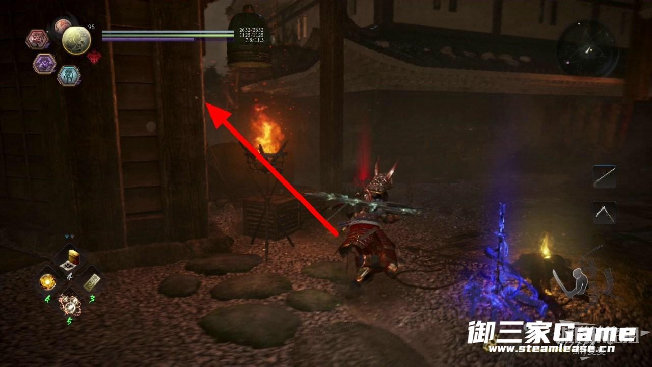 进入大门内有一直猿鬼,击杀之后,进入前方的建筑内。