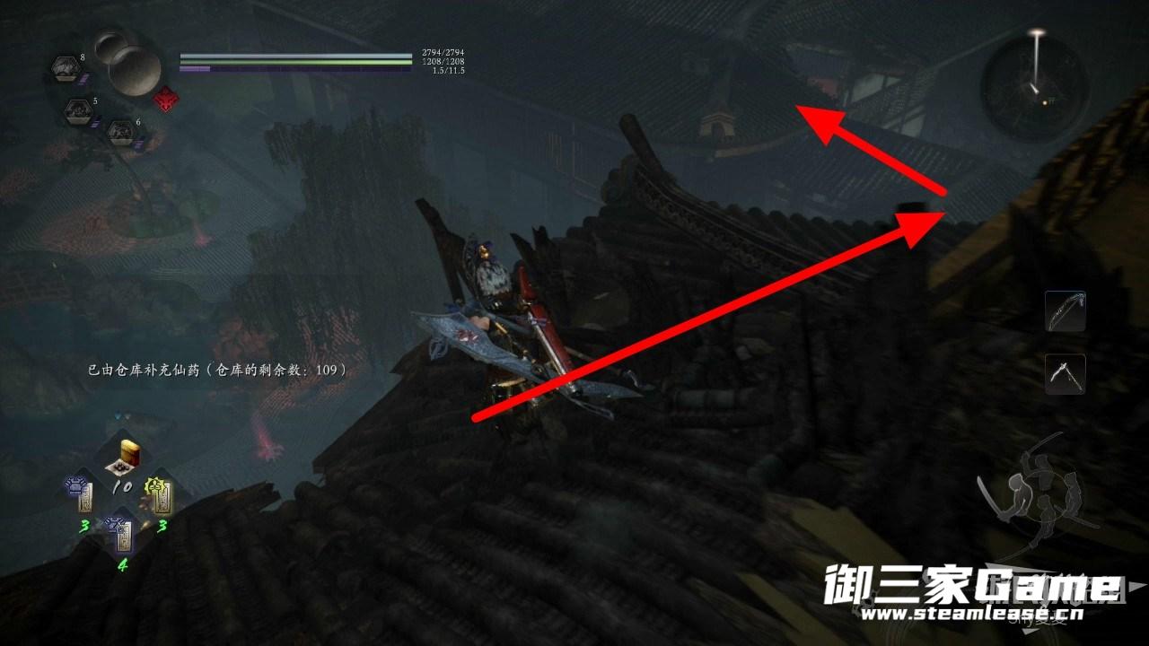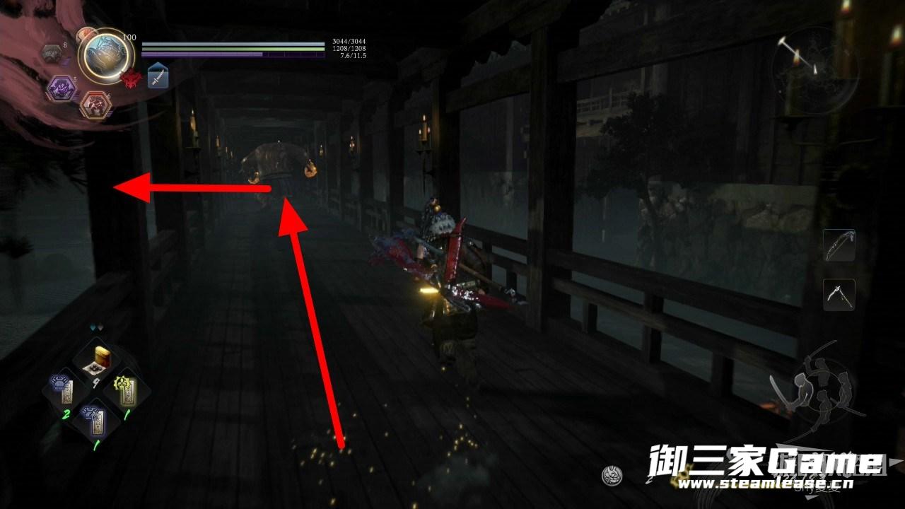 跳下来杀掉两个忍者后,向右走进入书库。