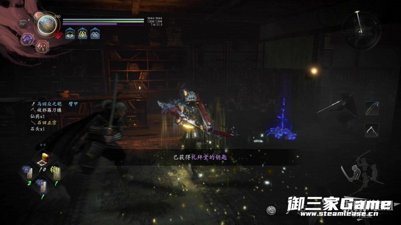书库有多波敌人,第一波:两只妖鬼;第二波:妖鬼、猿鬼;第三波:亡骸武者×2、祸津武士。战胜之后获得礼拜堂的钥匙。