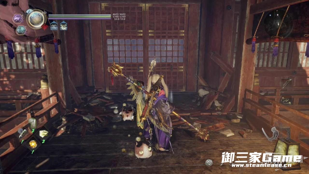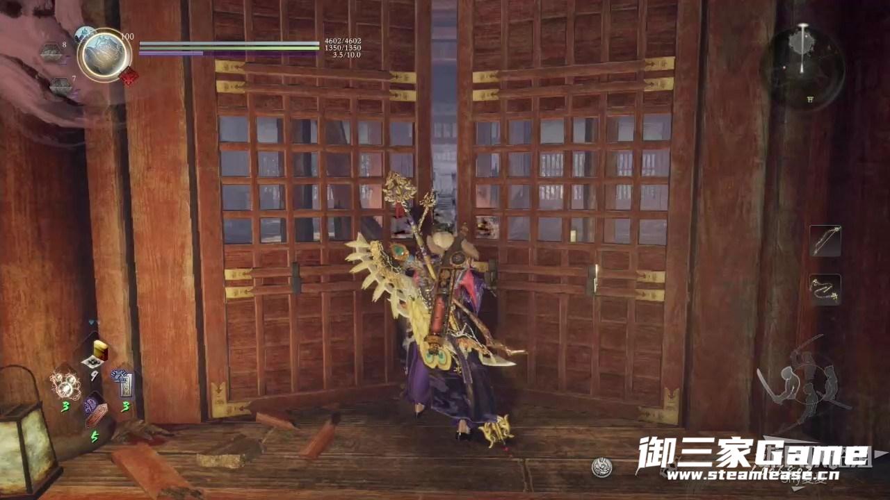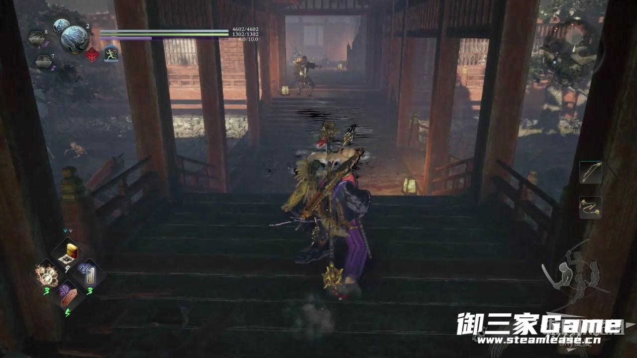 放火之后,返回神社,走另一边,打开下图的门,进去击杀里面的敌人(常世之中是一个妖蟹,电死即可)。