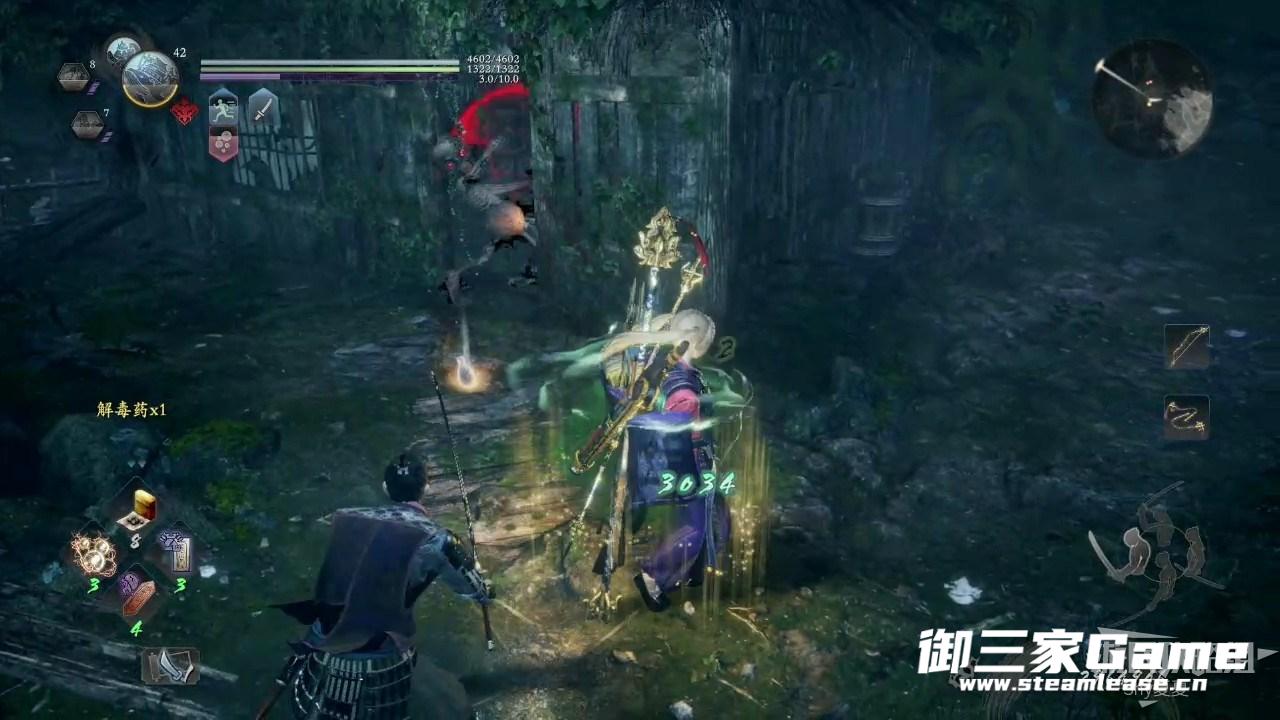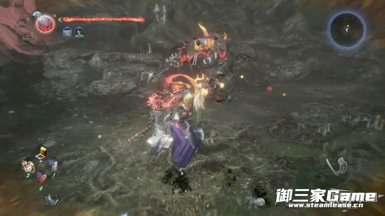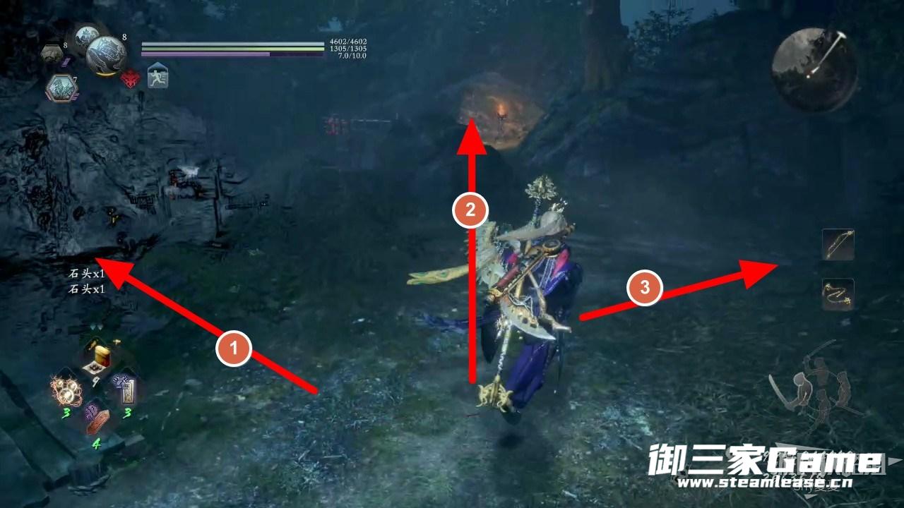 首先过桥,在桥边击杀赤河童,过桥之后会看到一个轮入道,击杀后继续前进,直到下图的位置,左边是常暗区域,右边则是主线的路线,此时有3条路走,1号道路跳下台子,直接进入常暗,敌人最多,不推荐;2号道路击杀一个武士,从后方进入常暗,常暗的主怪在屋子里,击杀即可破除常暗;3号道路完全不理会常暗直接前进,建议先去2号道路破除常暗,再走3号道路。