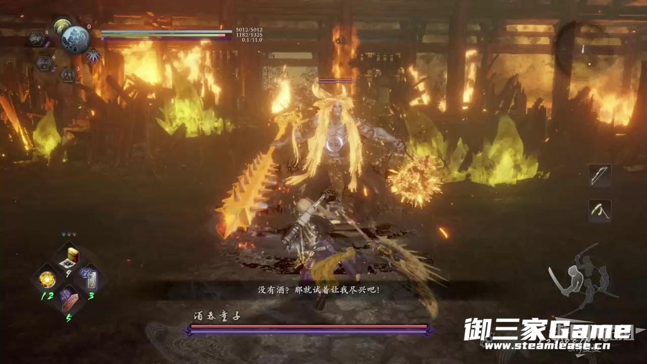 酒吞童子是一个妖怪类BOSS,使用火元素进行攻击。他的每次命中都会对你造成很大的伤害,但是攻击速度很慢。当他喝醉时会跌倒在地,白送你一发处决。