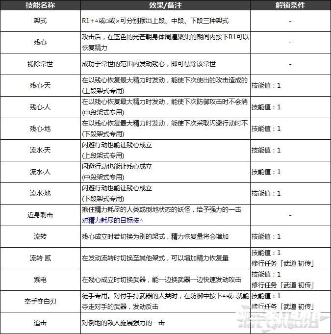 《仁王2》中除了武士、半妖、阴阳和忍者技能之外,不同的武器分别具有不同的技能树,其中部分技能的解锁需要满足一定条件。今天就为大家介绍一下《仁王2》全技能效果及解锁条件,希望对大家有所帮助。