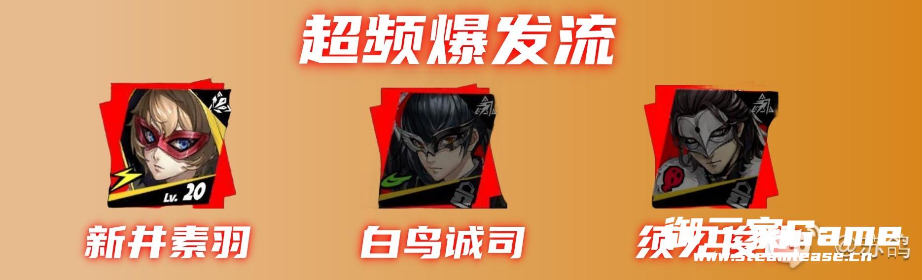 新井素羽的技能【雷霆之怒】和白鸟诚司的技能【风之呼啸】【优雅风暴】【无影直刺】【HIGHLIGHT】【焦点】都可以对敌人造成多段伤害可以更好的触发须见俊也的面具技能【命运的十四行诗】,以便打出超高的爆发伤害,并且这三个角色都很好获得,如果凑齐可以开荒使用。