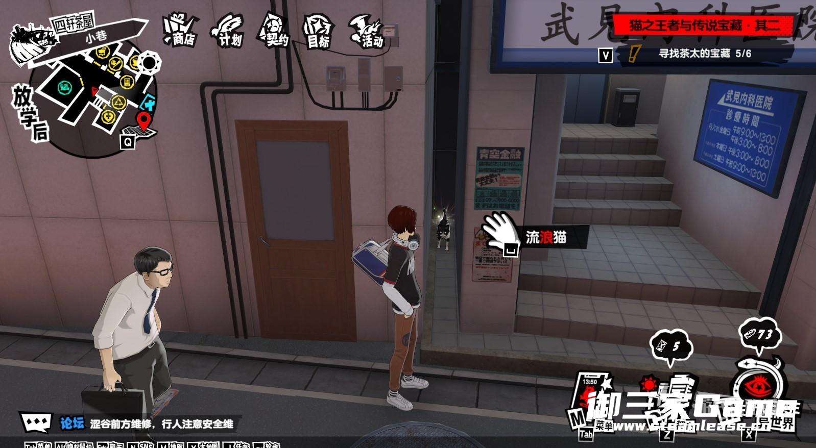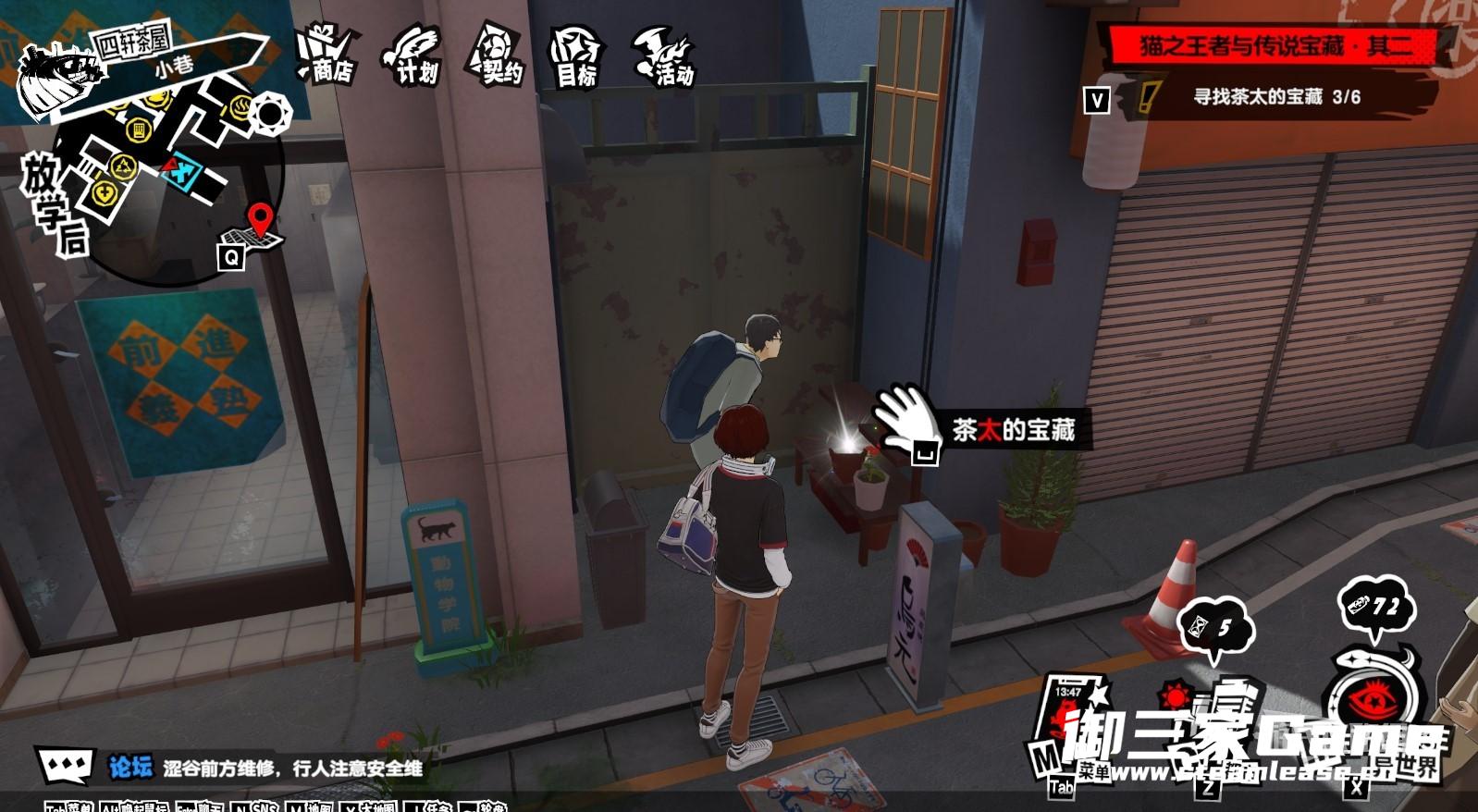 《女神异闻录夜幕魅影》中的系列支线任务“猫之王者与传说宝藏”需要玩家在各个区域找到茶太的宝藏,部分位置比较隐蔽,下面就为大家带来《女神异闻录夜幕魅影》四轩茶屋茶太的宝藏位置汇总,希望对大家有所帮助。