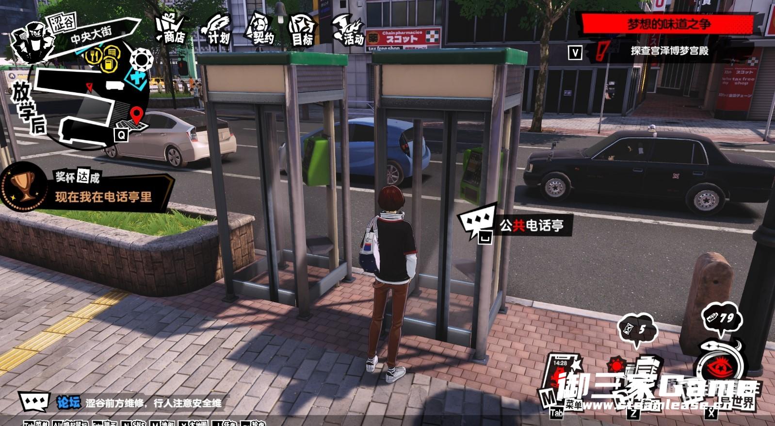 与电话亭互动可以进入电话亭。