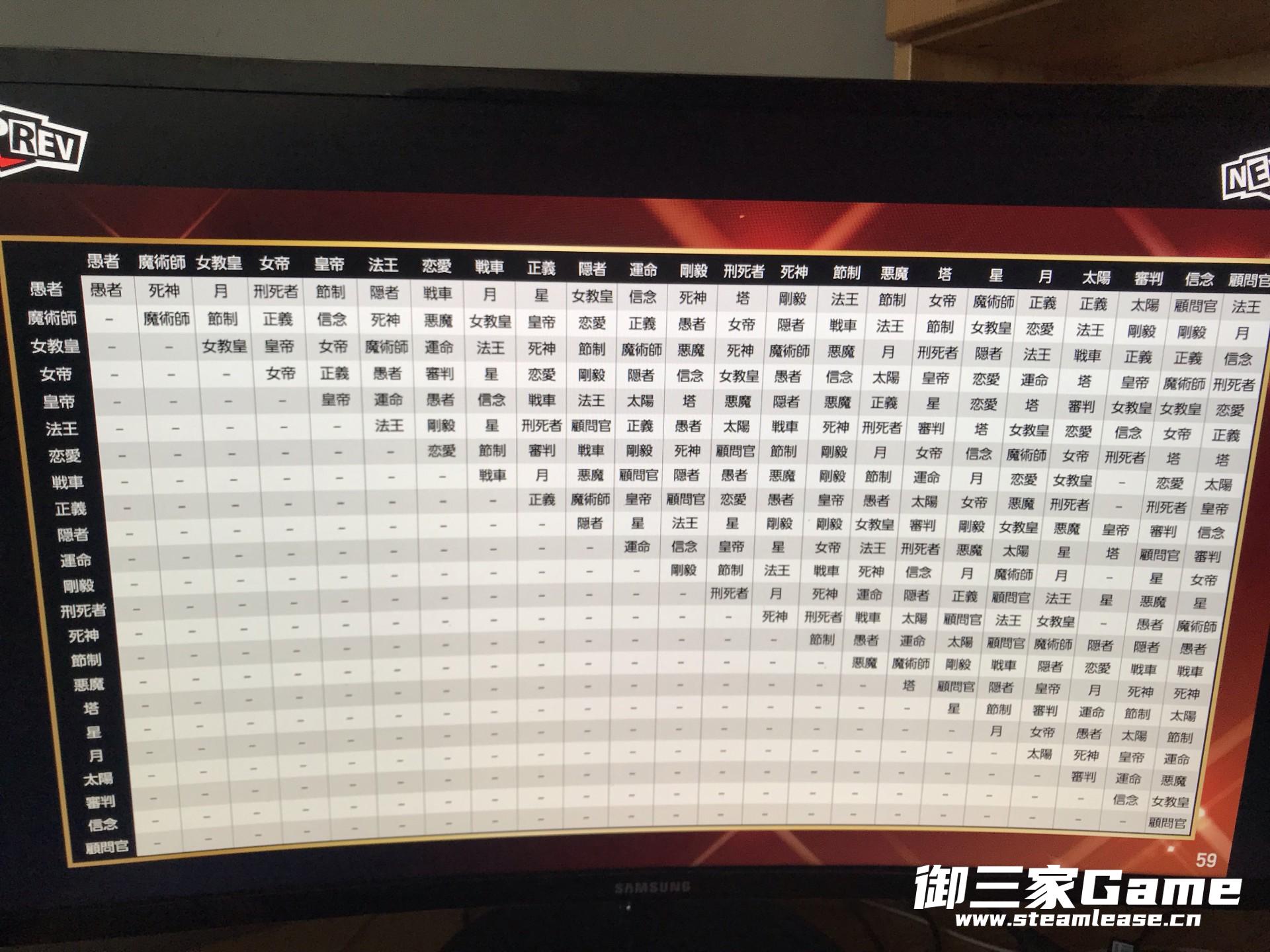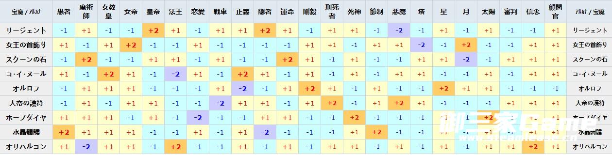 合成规律表:最简单的例子, 愚者+魔术师=死神P 其他依次如图,这个并不算全,相对应的无印多数合成规律5R依然通用。