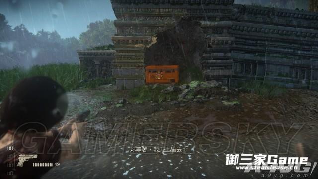 在目标点右侧的高台上还有一个RPG手,杀掉后也会凋落一枚RPG。