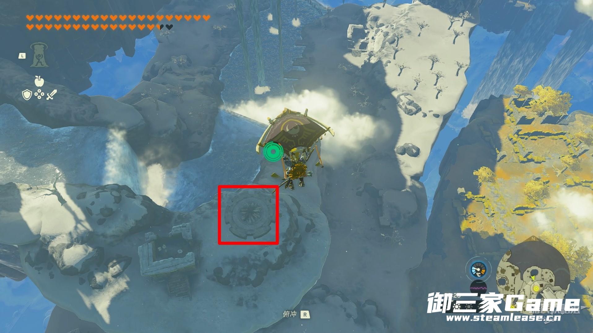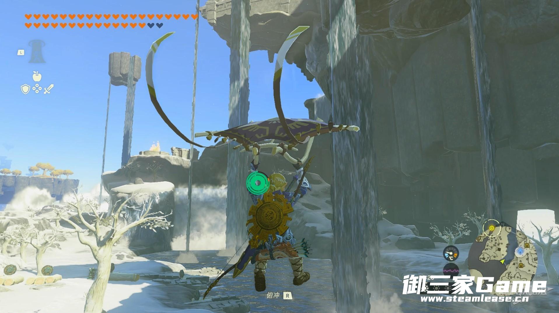 随后转身向西北雪山区域,利用落下空岛的瀑布提升一次高度,同样使用大该一管半精力就能到达。