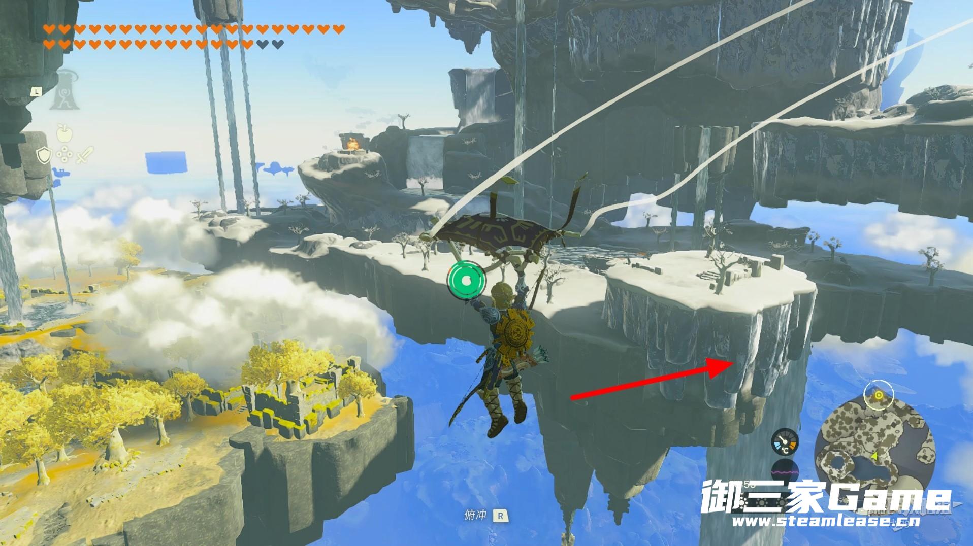 由于任务需要使用滑翔伞、一管半以上的精力条(建议带一些补充精力的食物以备不时之需)以及带有特殊能力【攀瀑】的卓拉铠甲,因此建议大家后期再返回空岛完成该任务。