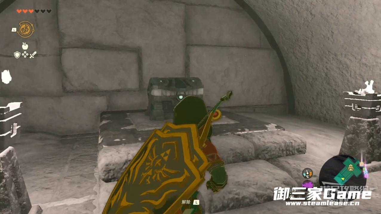 倒转旋转的装置,上到台子上打开宝箱就可以获得盾牌。