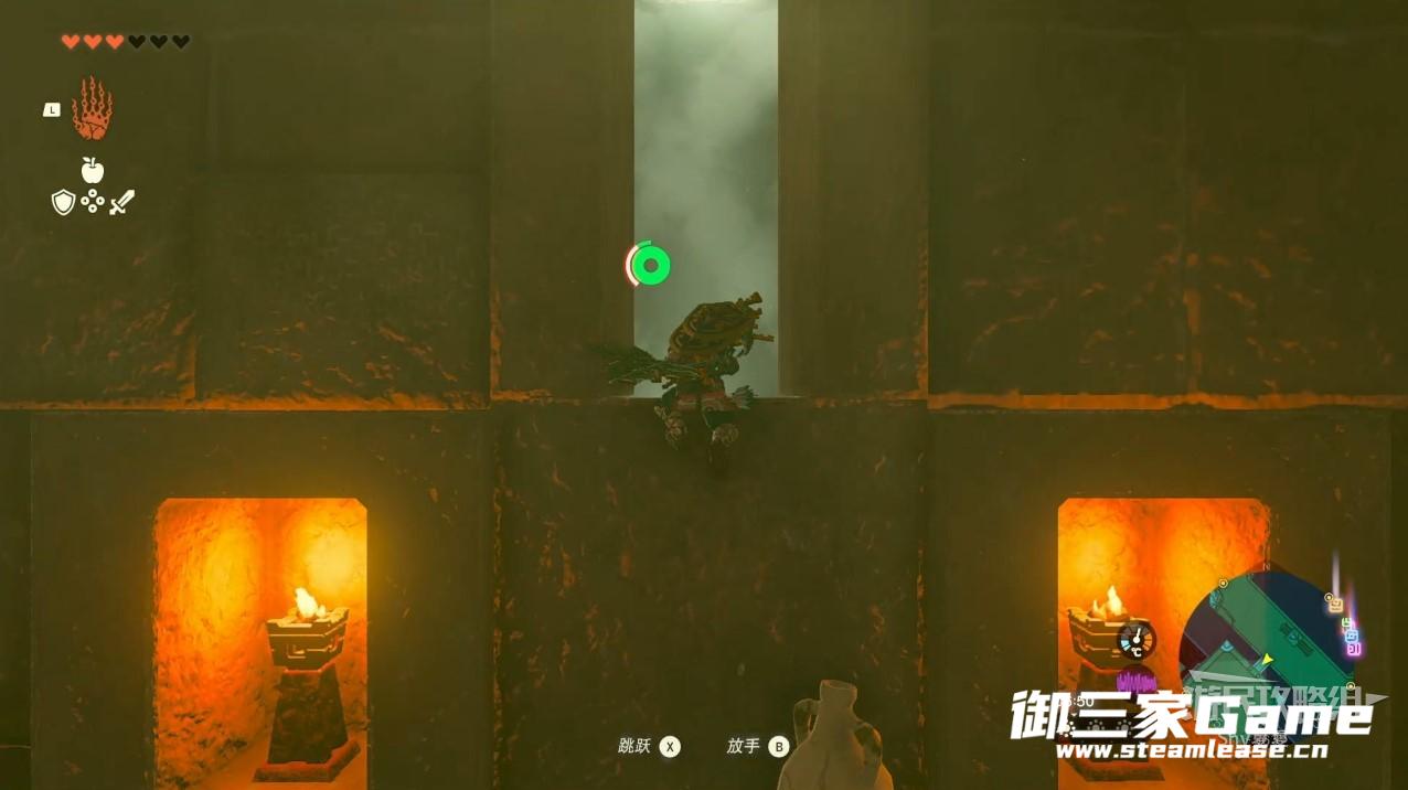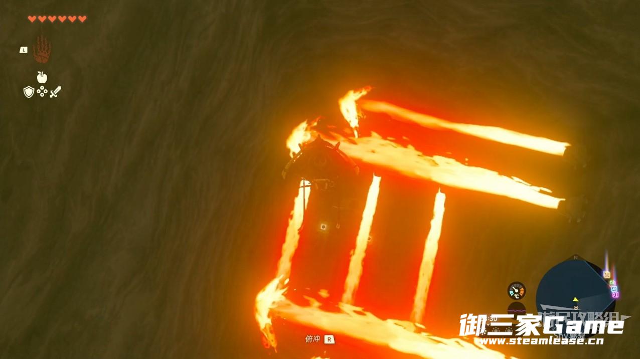 当你看到喷火的道路时,不要急着过去,直接走会触发陷阱掉入下层(掉下去可以捡到一个匕首),建议从左侧绕一圈。穿过喷火陷阱需要卡好节奏。