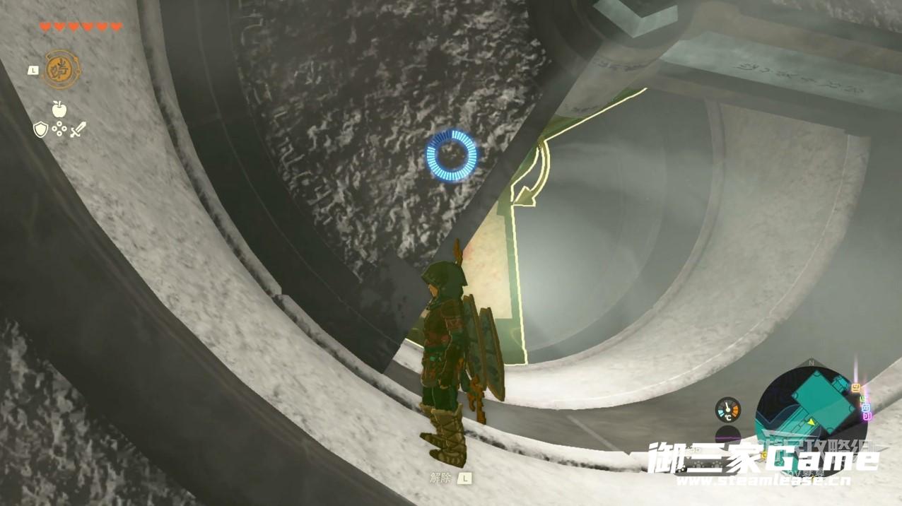 移动西南和东南的两个镜子,使其射向下方,会开启一个门。使用滑翔伞跳到光束所照的位置,打开通道进入。