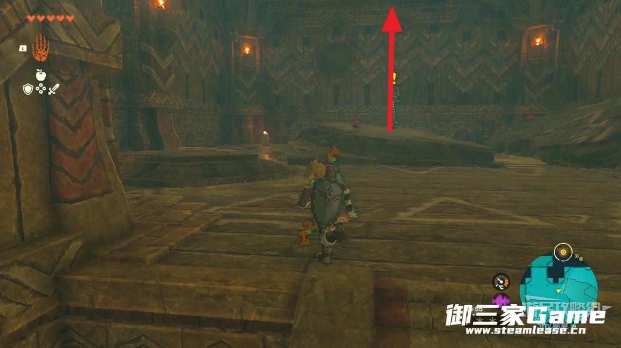看到一个敌人守卫全是碎裂的石板,消灭敌人后向上使用通天术。