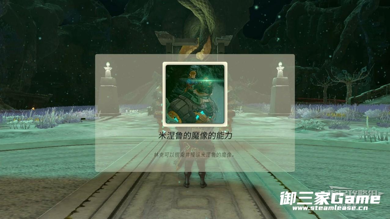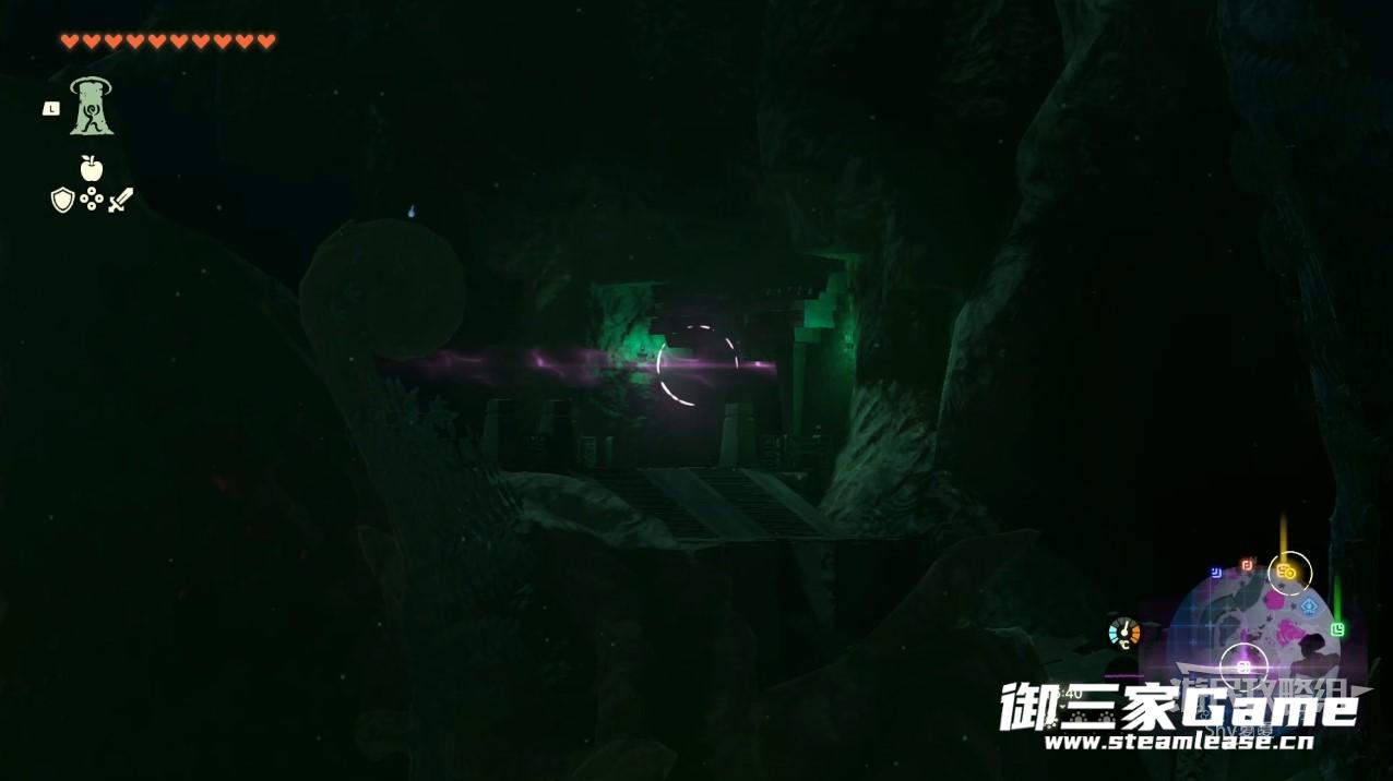 打开大门之后会看到一个面具,面具中发射的激光就是目标地点,把面具和飞机粘在一起,就能飞过去了。