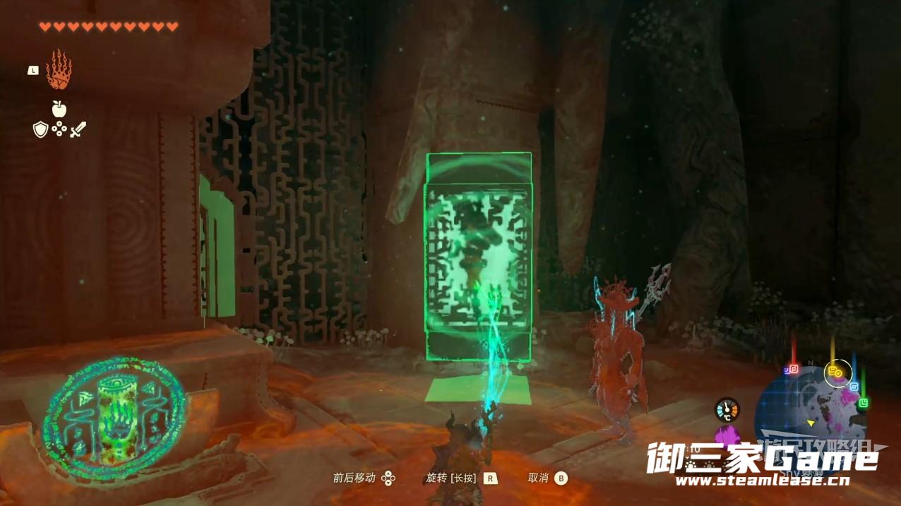 通过岩浆后,再利用究极手和时光倒流穿过石门,返回初始位置即可。