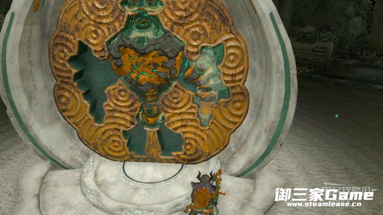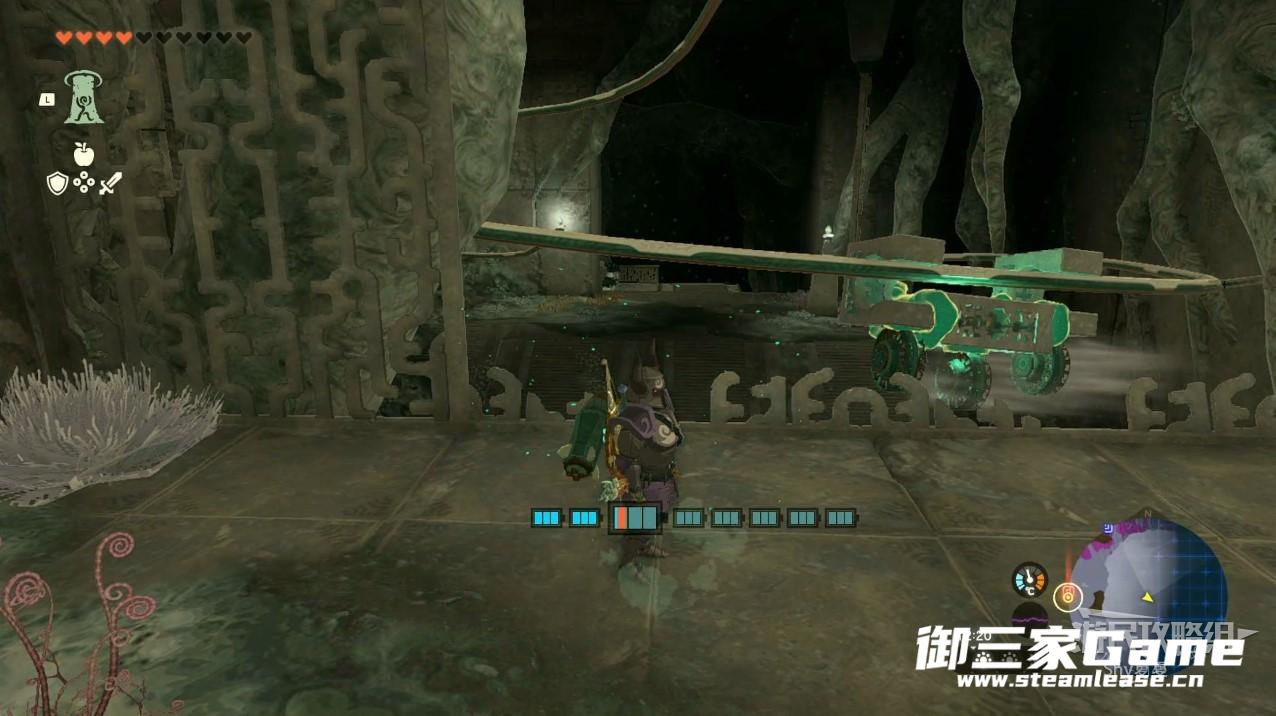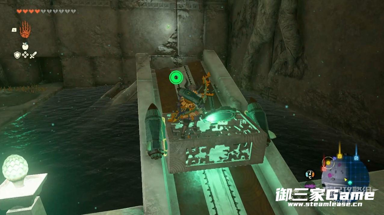 来到工坊后,与装置互动,装有左臂的箱子就会掉出,拿起箱子放在升降的石门旁。