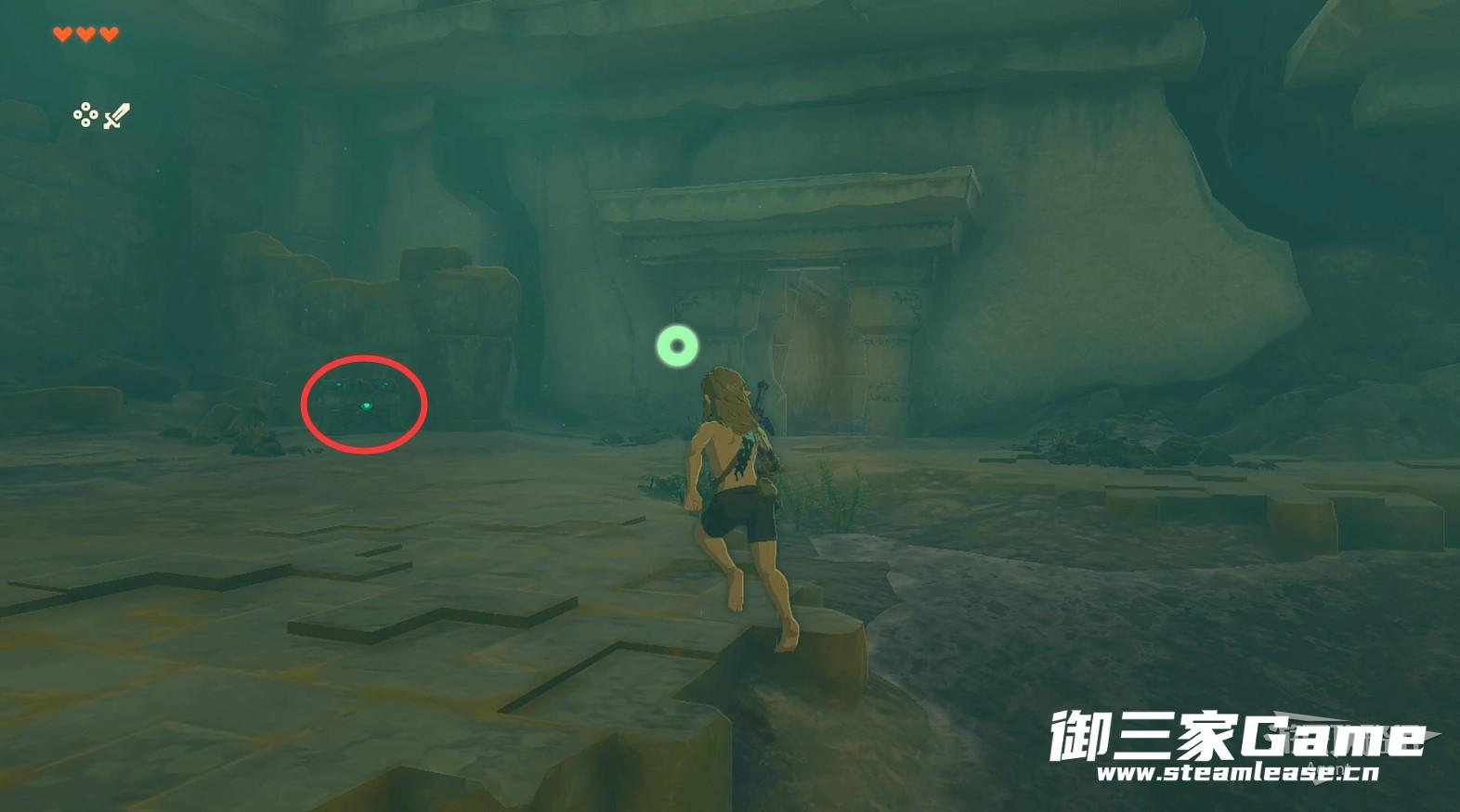 游戏最开始,连续跳几次水后,出门往下跳看LOGO落到初始空岛之前,出门前开宝箱拿到【防具】残旧的鞋子。