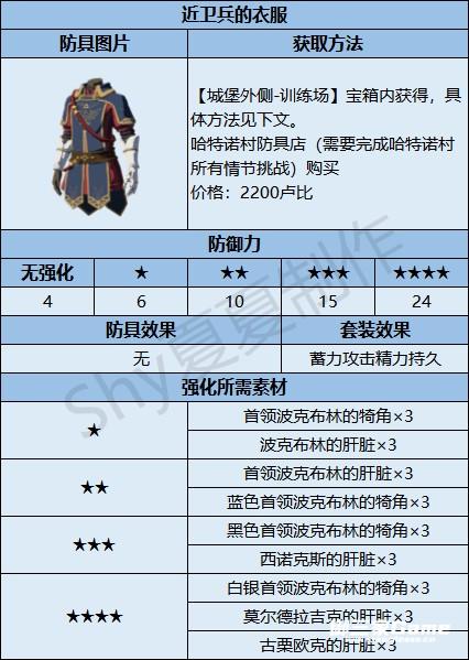 走到尽头左边下楼梯,就能来到训练所了,在训练所可以找到一个宝箱,打开获得【近卫兵的衣服】。