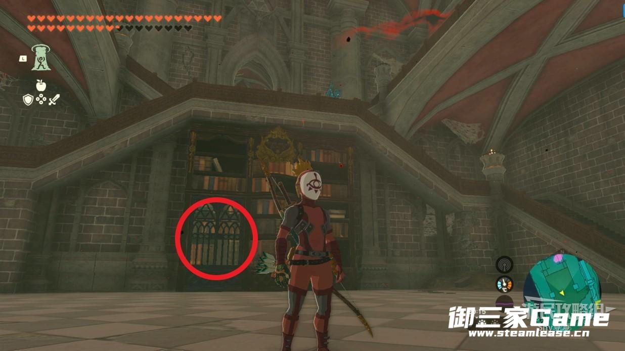 主线剧情必定会到达,在【图书馆】见过塞尔达之后,拉开尽头书架上的暗门。