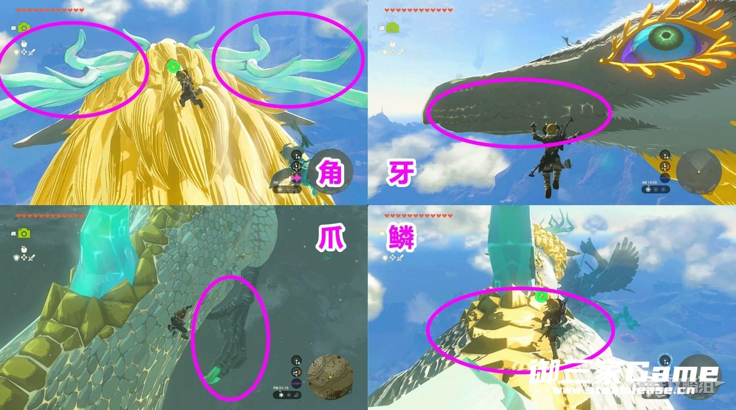 用近战武器或弓箭攻击白龙的四个部位,会分别掉落不同的素材。每隔十分钟可以收集一次,想要大量收集的话,最好是骑在龙身上,每隔10分钟攻击一次各部位。注意素材可能会掉落在地面上,尽可能靠近素材所在部位并用弓箭攻击,如果能在素材刚掉出时收集就不用往地面飞了。