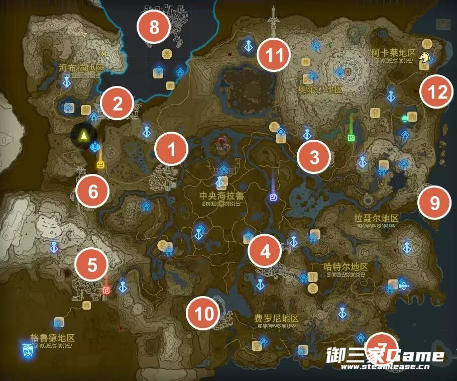 《塞尔达传说王国之泪》共有12个龙之泪,触发冒险回忆,这里分享下所有龙之泪的地图位置。