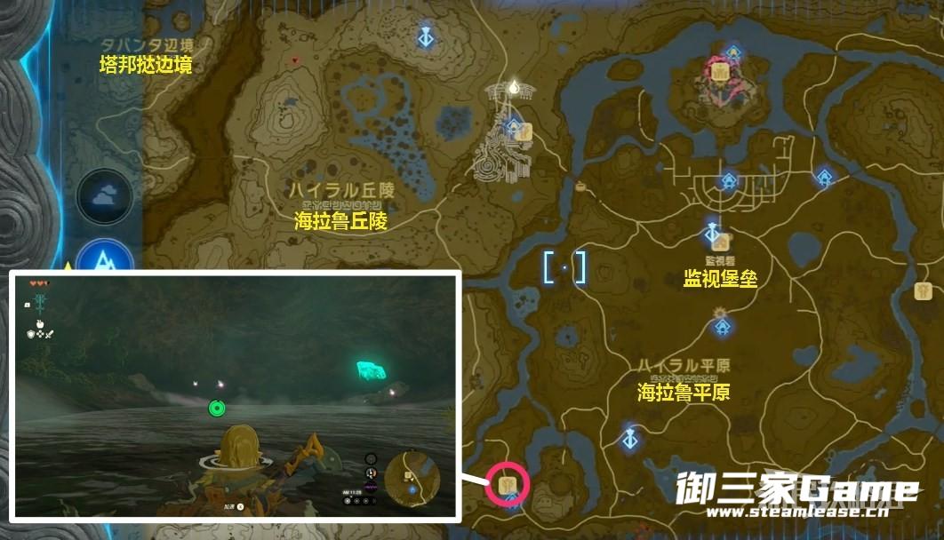 位于海拉鲁平原西南边【平原外围的驿站】的井中会出现3只妖精,下井后继续往前走,在水边可以找到。最近的传送点在【兹兹乌每神庙】。