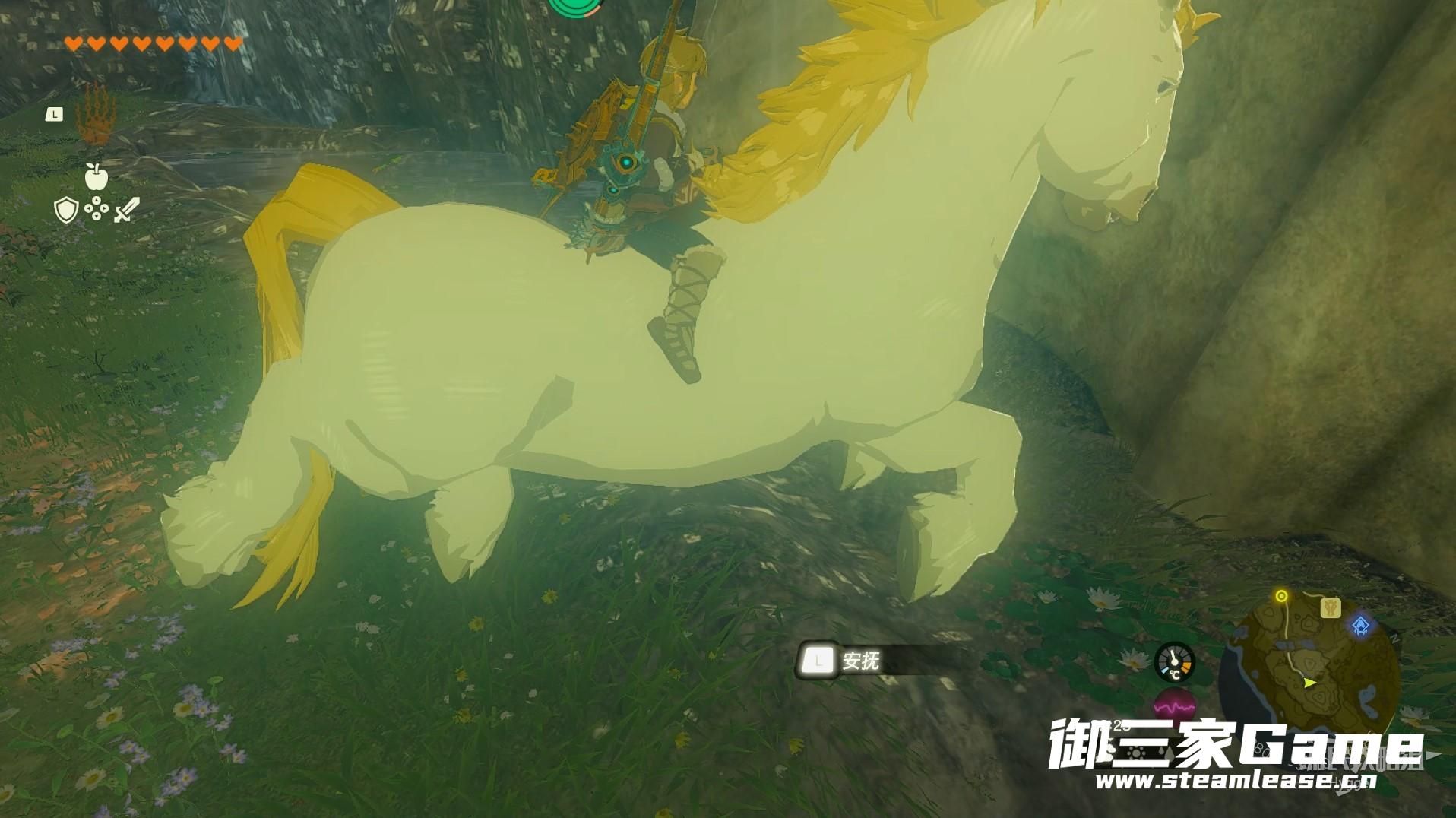 跳上马背后我们需要反复按下L键进行安抚,大该需要两管体力才能够成功驯服巨马。