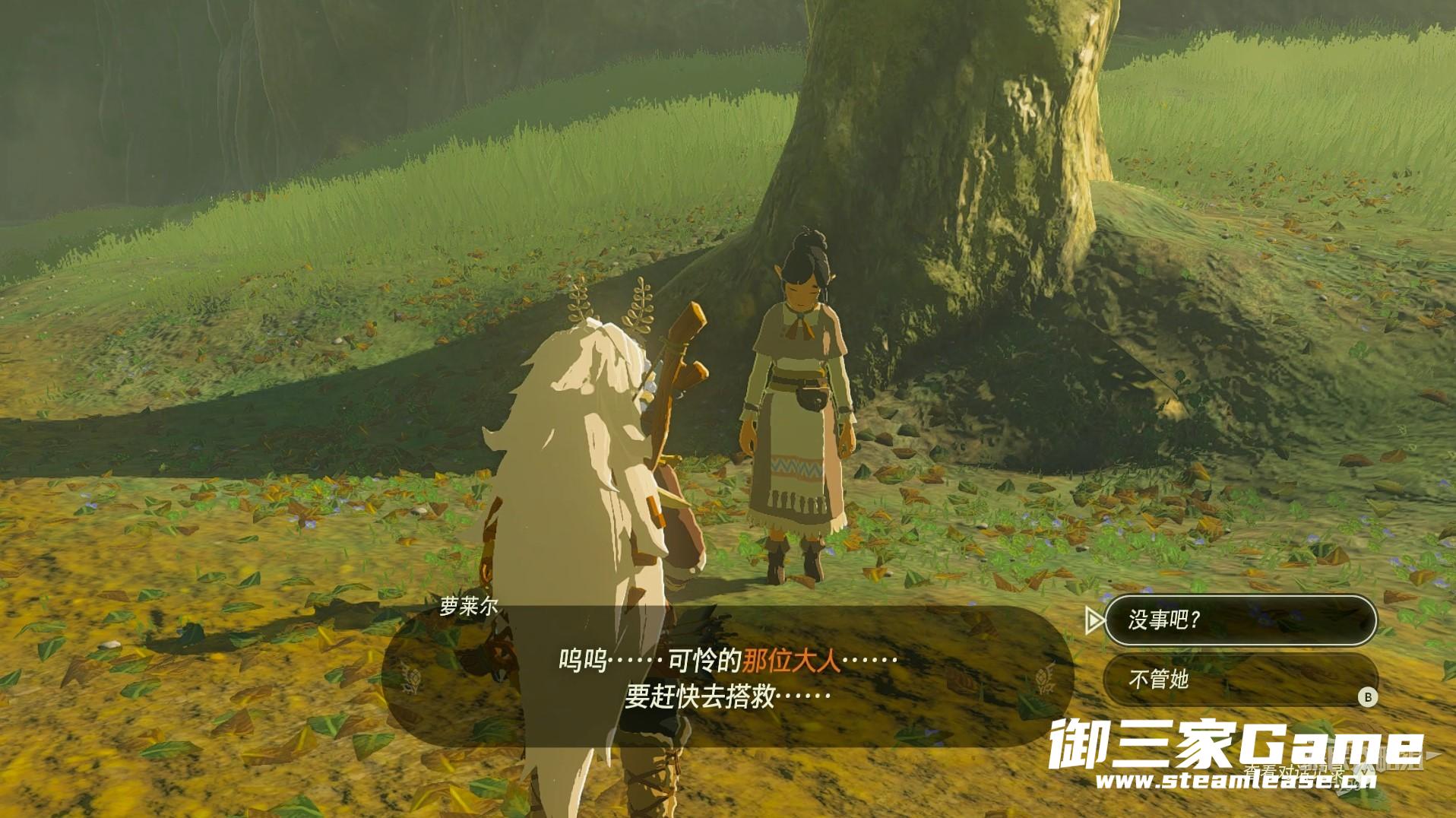 来到三岔路口与求助的女性交谈,女性表示希望我们能跟她走。