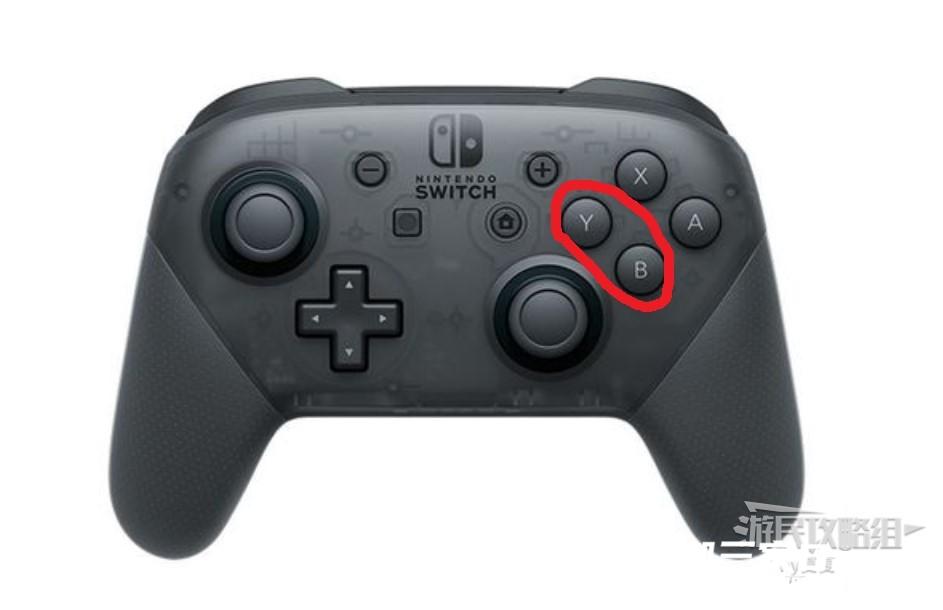 三、同时按下Y和B,尽量两个一个大拇指按下两个键。(虽然说是同时,但是B比Y要早一点点,同时按下如果成功就直接同时按,如果经常失败,就稍微B键按快一点)