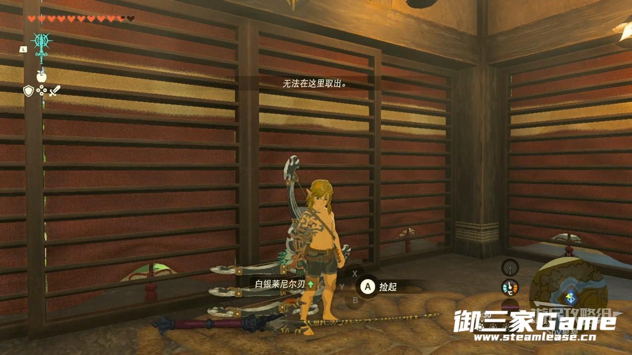 如果提示“无法在这里取出”,基本就成功了,打开物品栏,装备刚刚没丢掉的大师之剑,关闭物品栏,捡起地上的基底武器。