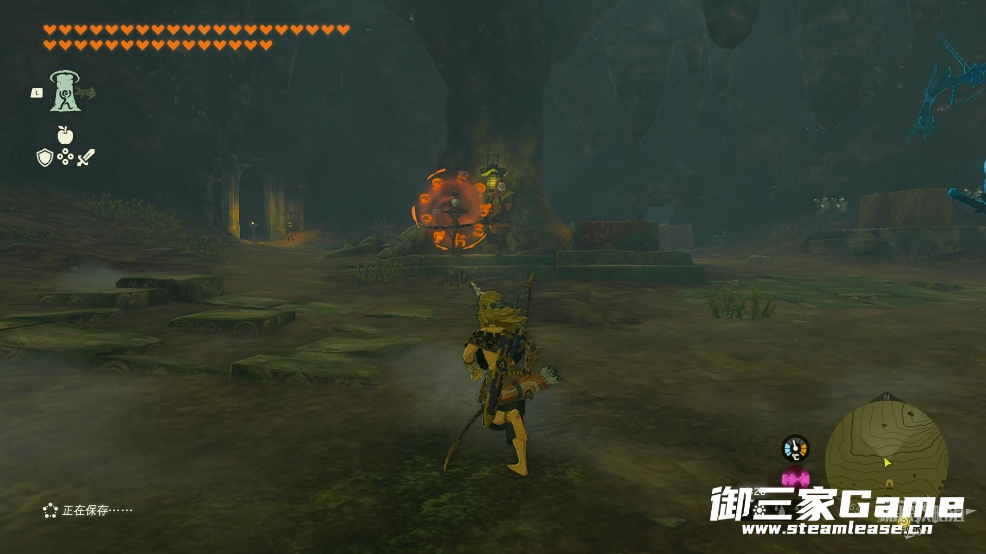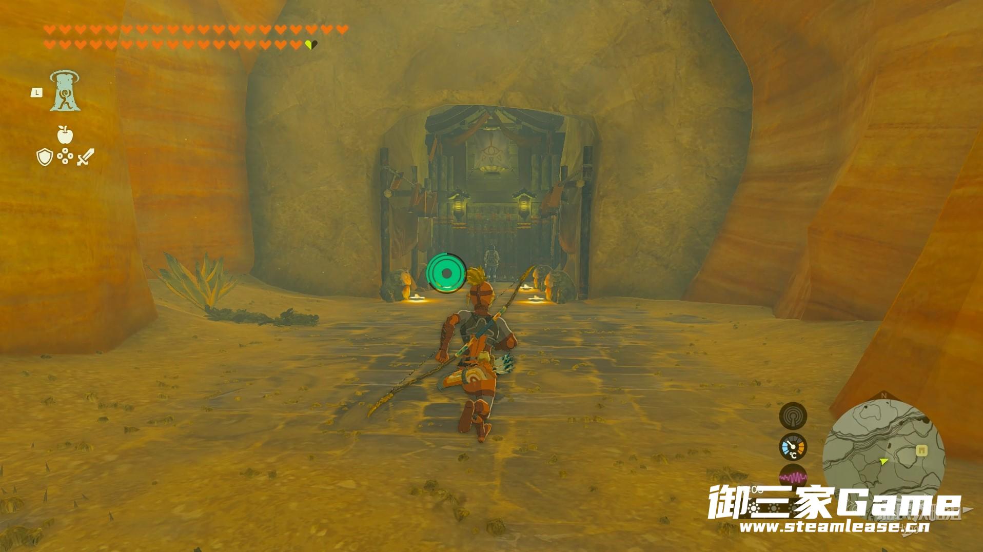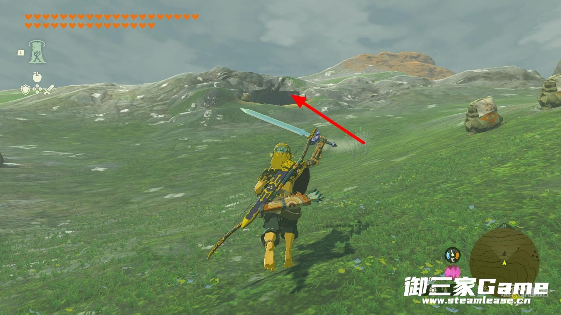 在此处可以看到山坡上有一个山洞,进入山洞内部。
