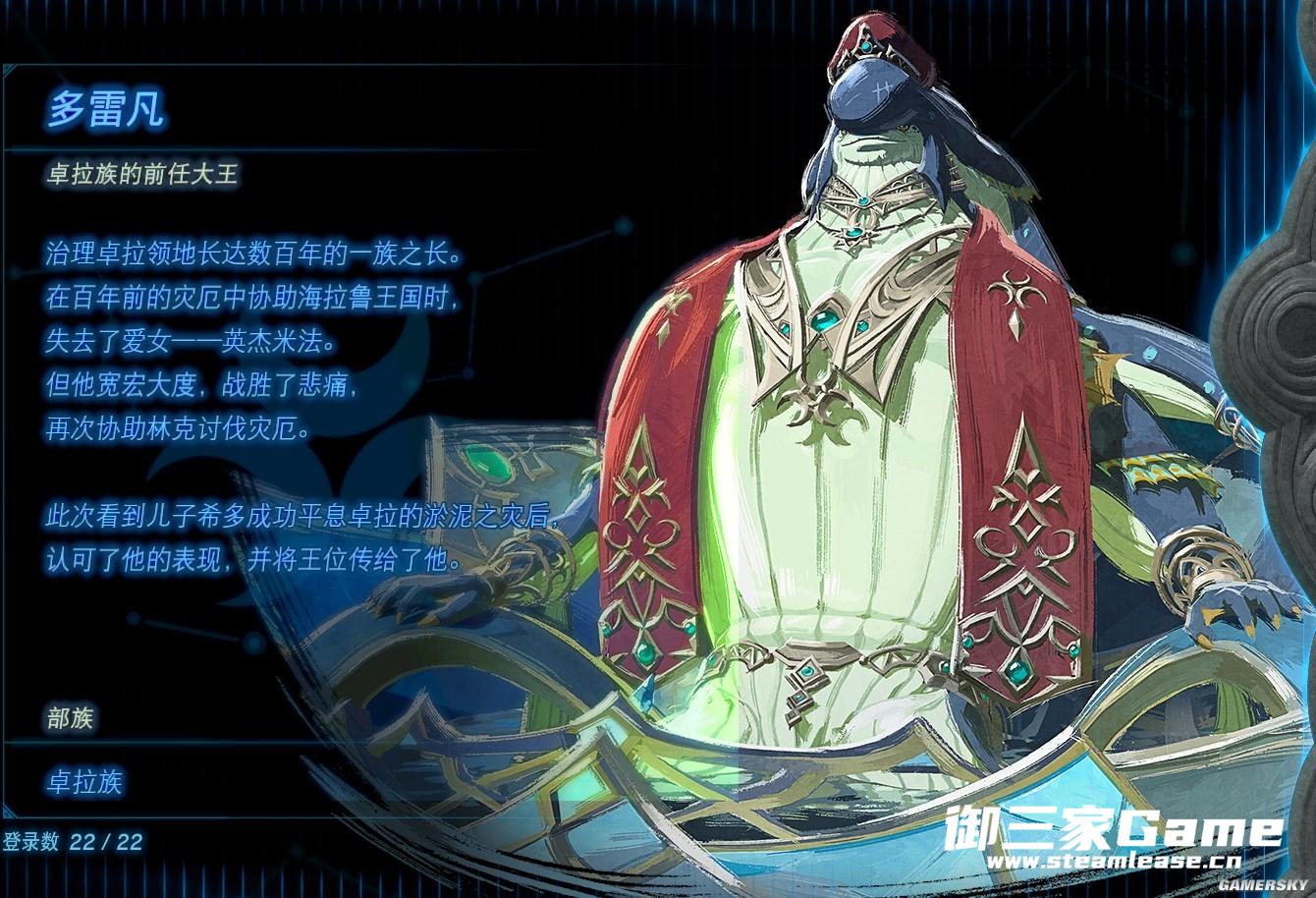 治理卓拉领地长达数百年的一族之长。在百年前的灾厄中协助海拉鲁王国时,失去了爱女一一英杰米法。