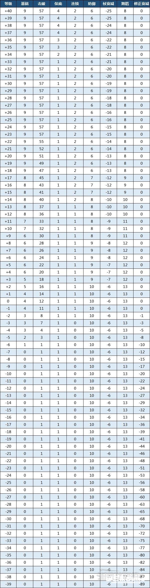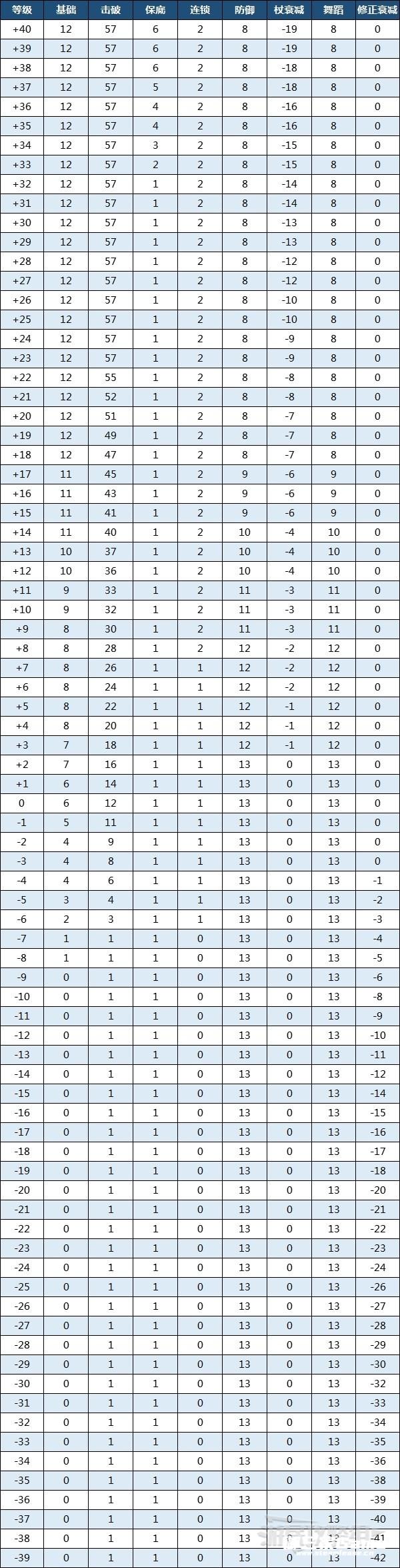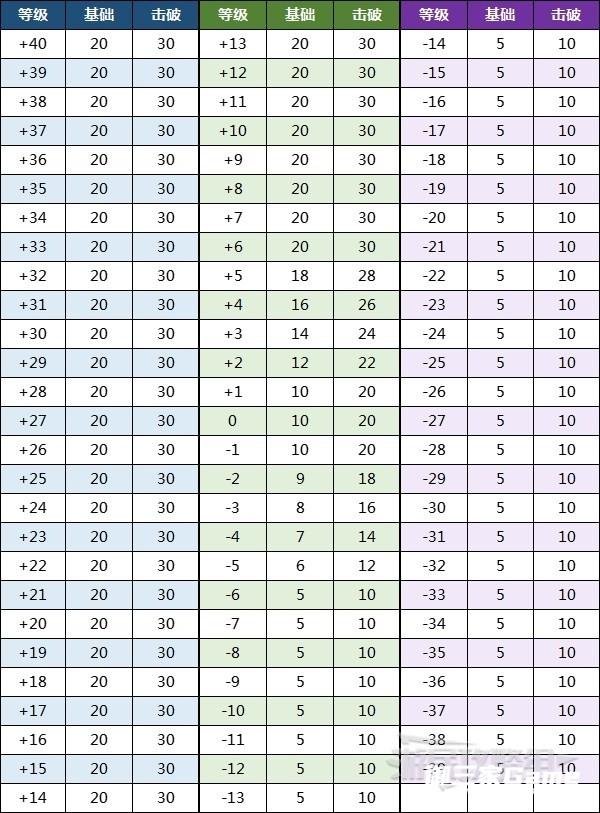 参考下方表格,与同一名敌人连续战斗也会出现获得经验值为0的情况。