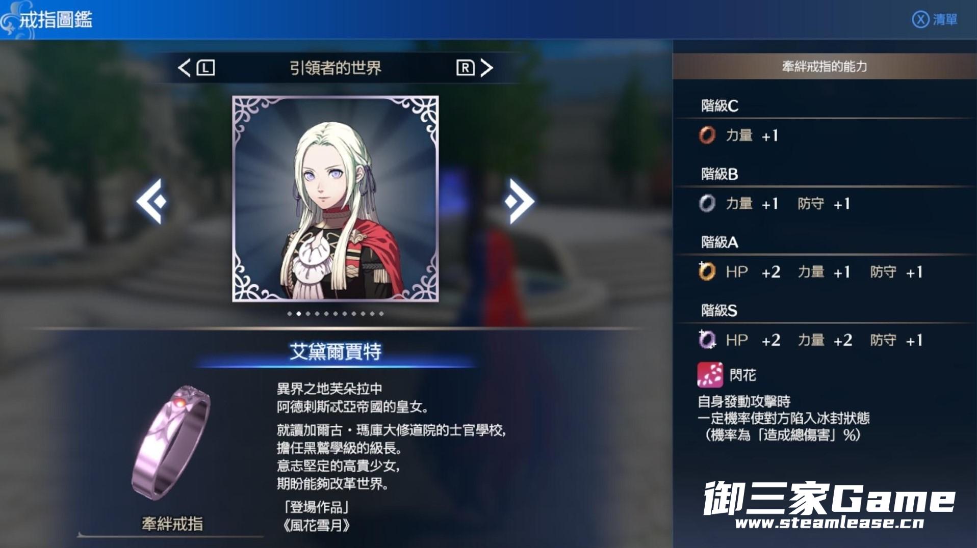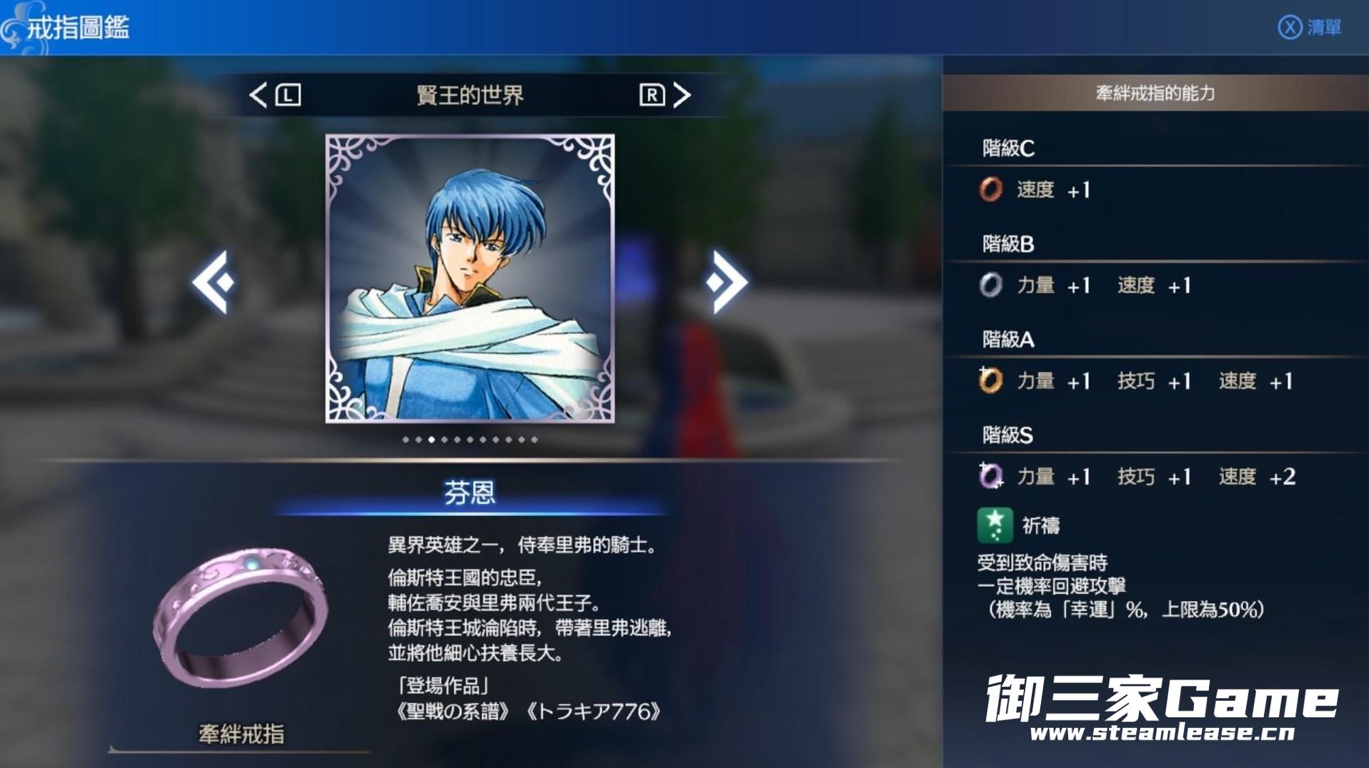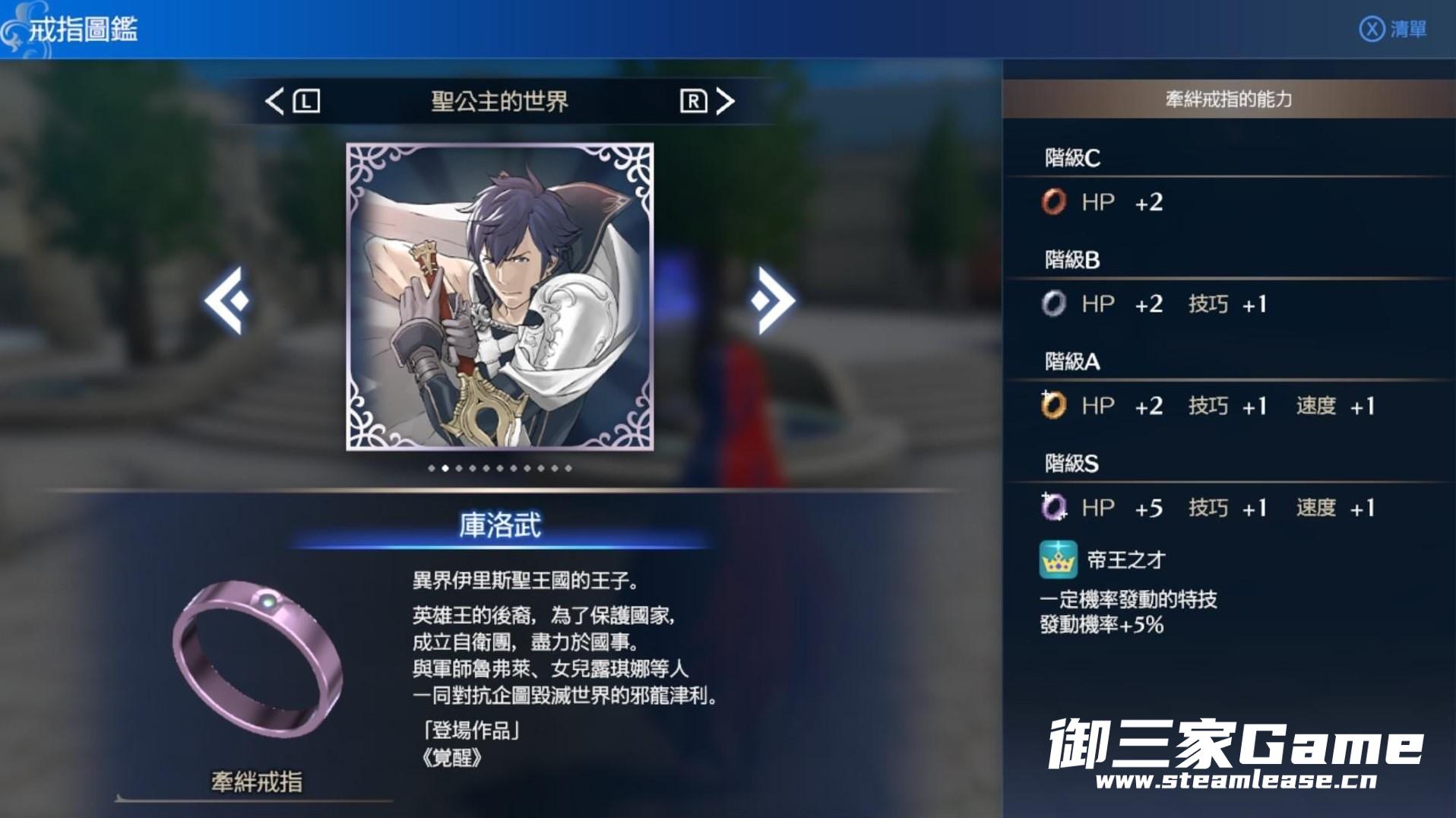 《火焰纹章结合(engage)》中的纹章士以戒指的形式存在,有些戒指拥有附加的能力。下面请看由“Richter634”带来的《火焰纹章结合(engage)》附能力的纹章士戒指一览,一起来看看吧。