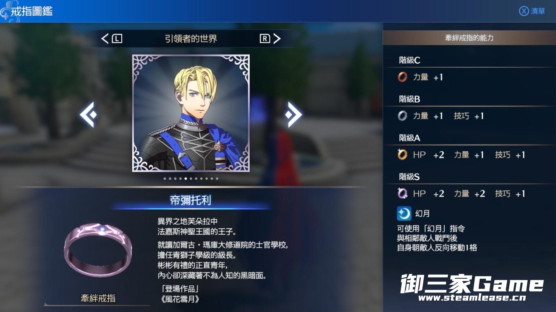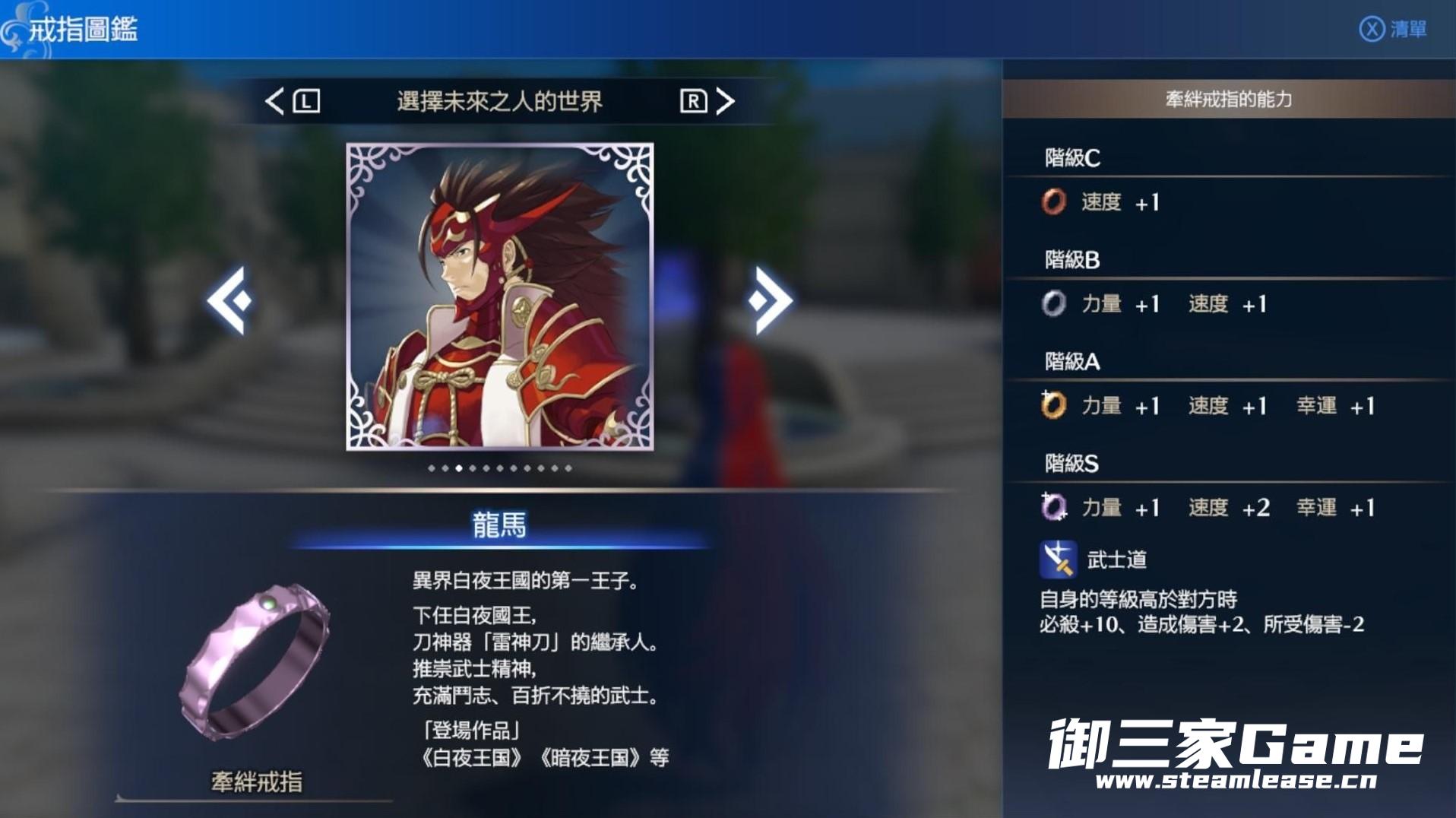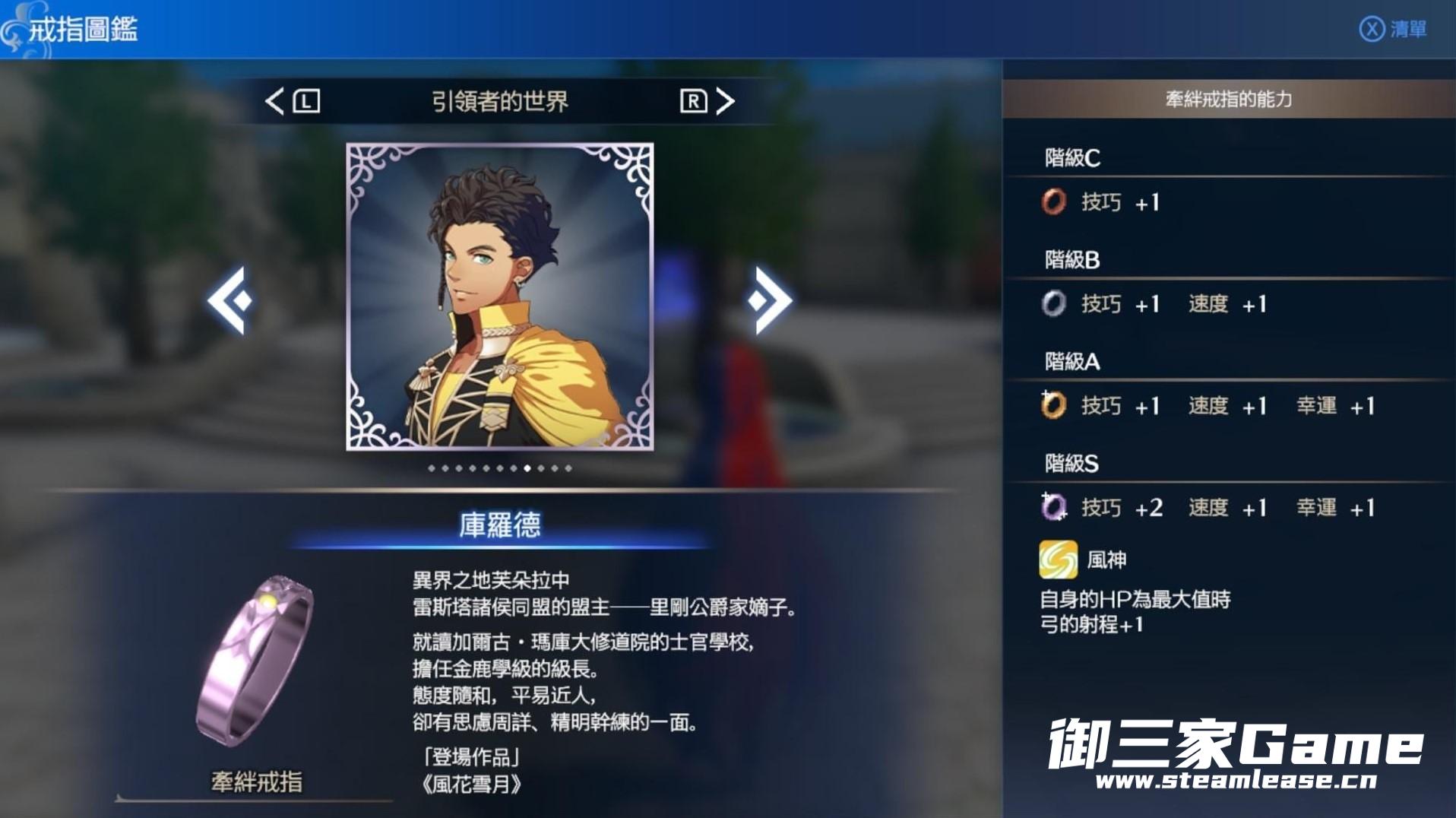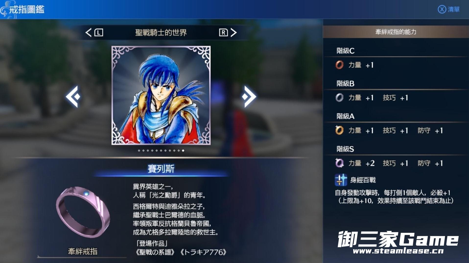 《火焰纹章结合(engage)》中的纹章士以戒指的形式存在,有些戒指拥有附加的能力。下面请看由“Richter634”带来的《火焰纹章结合(engage)》附能力的纹章士戒指一览,一起来看看吧。