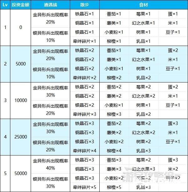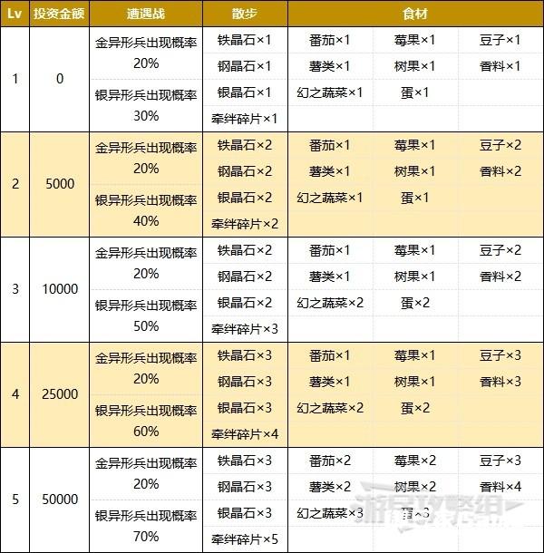 Lv2摊贩礼包:猪肉、牛肉、鸡肉、羊肉、鲱鱼、鲑鱼、鳕鱼、鳗鱼、乳品、蛋、米各5个;幻之鱼10个;牵绊碎片×500