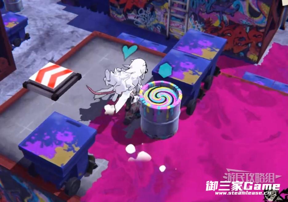 射击喷涂罐,喷涂罐爆炸会对周围喷涂攻击方势力的颜色。也可用近战攻击将喷涂罐击飞。这比直接攻击敌人的喷涂范围更广,积极活用这一点吧。