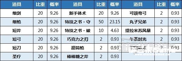 通过神秘水井能获得的道具大部分是商店出售的武器,但也会包含「技能书」和「水井限定武器」。限定武器是外观像美食的特殊武器,例如牛角包、棒棒糖等,虽然属性一般,但等级为D,也算有一定用途,但限定武器的价格非常便宜,再次投入水井就非常不划算了。