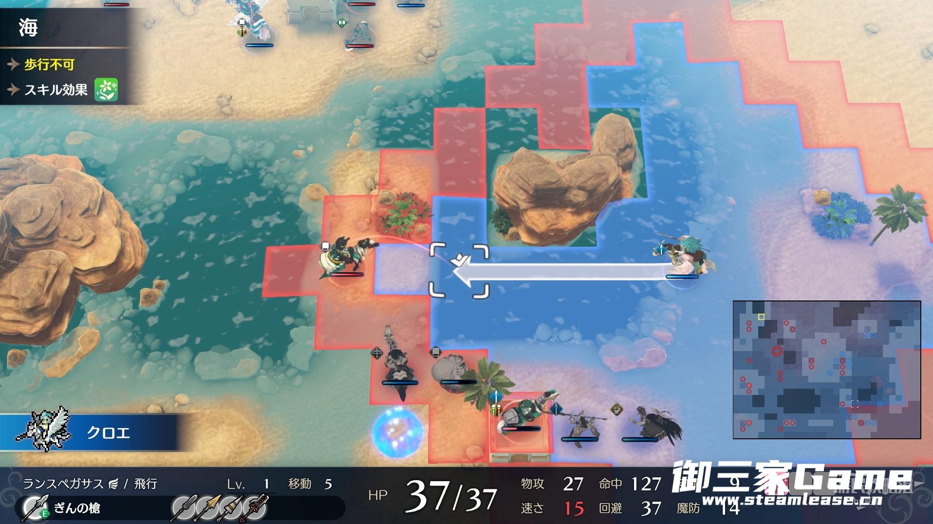 当进入敌人的射程范围内时会有指引线提示,可以借此避免在下一回合被集中攻击。