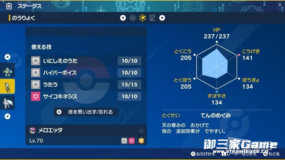 属性:【歌声形态】一般/超能力;【舞步形态】一般/格斗(使用古老之歌可以变换形态)
