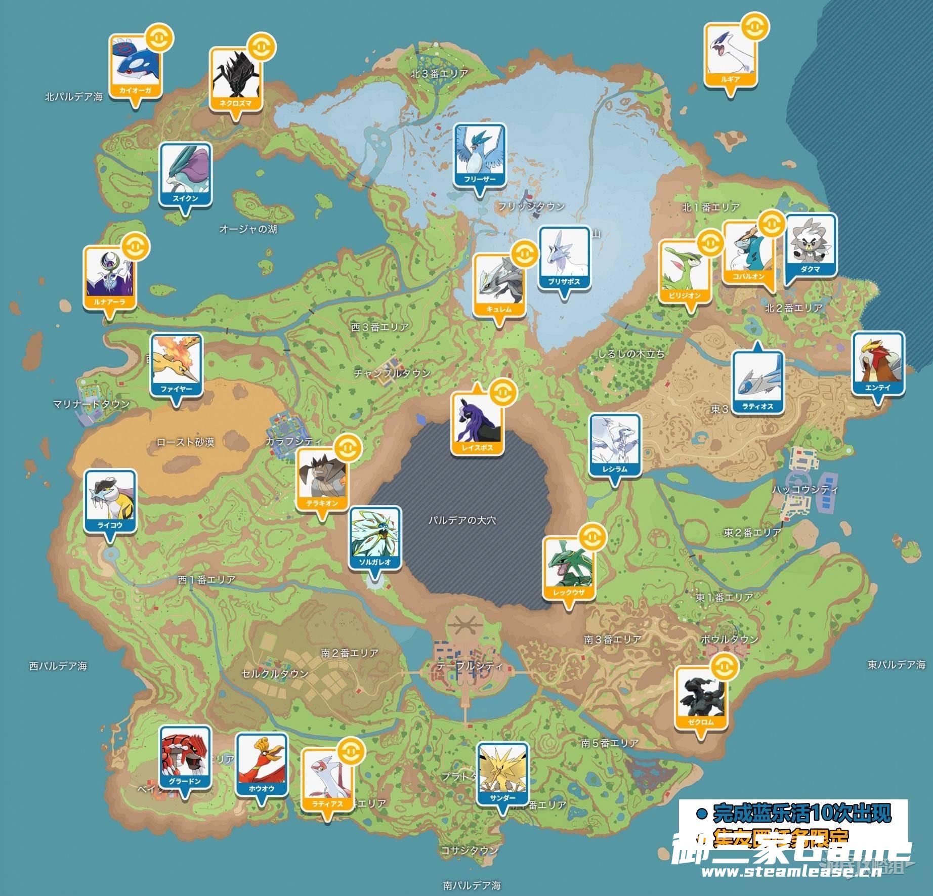 紫版:急冻鸟、闪电鸟、火焰鸟、熊徒弟、勾帕路翁、代拉基翁、毕力吉翁、洛奇亚、拉帝亚斯、盖欧卡、捷克罗姆、露奈雅拉、灵幽马