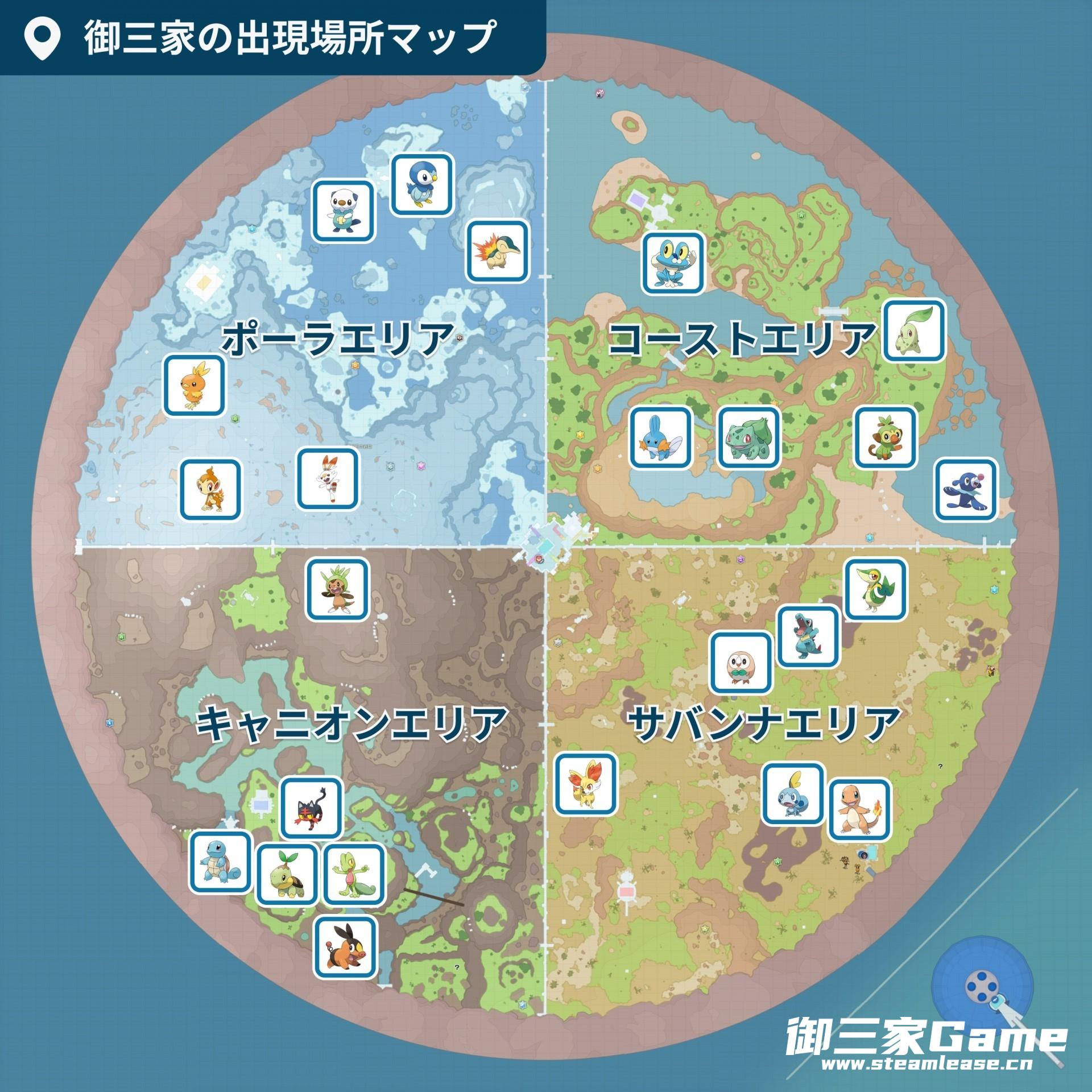 成功赞助某环境的环境改善后,御三家就会出现在该区域当中,可以参考本文最上方地图来优先改善想要的御三家所在区域的环境。