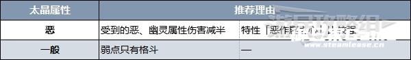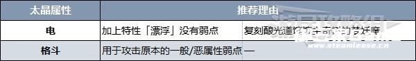 由于可以从本次活动中获得太晶属性与原始属性不同的梦妖魔,属性相同的梦妖魔在非活动期间也能获得,因此建议优先刷属性不同的梦妖魔。下方列出可通过本次活动获得的比较适合的太晶属性。
