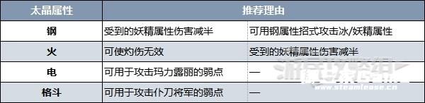 由于可以从本次活动中获得太晶属性与原始属性不同的三首恶龙,属性相同的三首恶龙在非活动期间也能获得,因此建议优先刷属性不同的三首恶龙。下方列出可通过本次活动获得的比较适合的太晶属性。