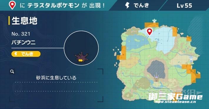 啪嚓海胆位于下图所示位置,也会出现在固定的太晶巢穴中,但建议寻找栖息地的沙滩附近,用太晶啪嚓海胆交换不合适。