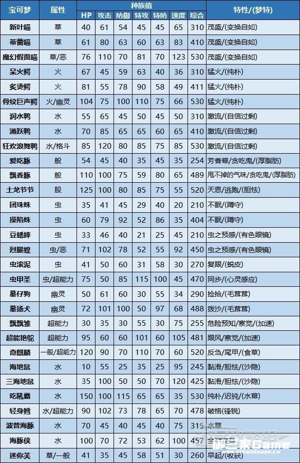 《宝可梦朱紫》的帕底亚地区出现了许多宝可梦,其中包含22只全新的宝可梦,每个版本各有数只版本限定宝可梦。下面就为大家介绍一下《宝可梦朱紫》新增宝可梦属性及种族值一览,一起来了解一下吧。