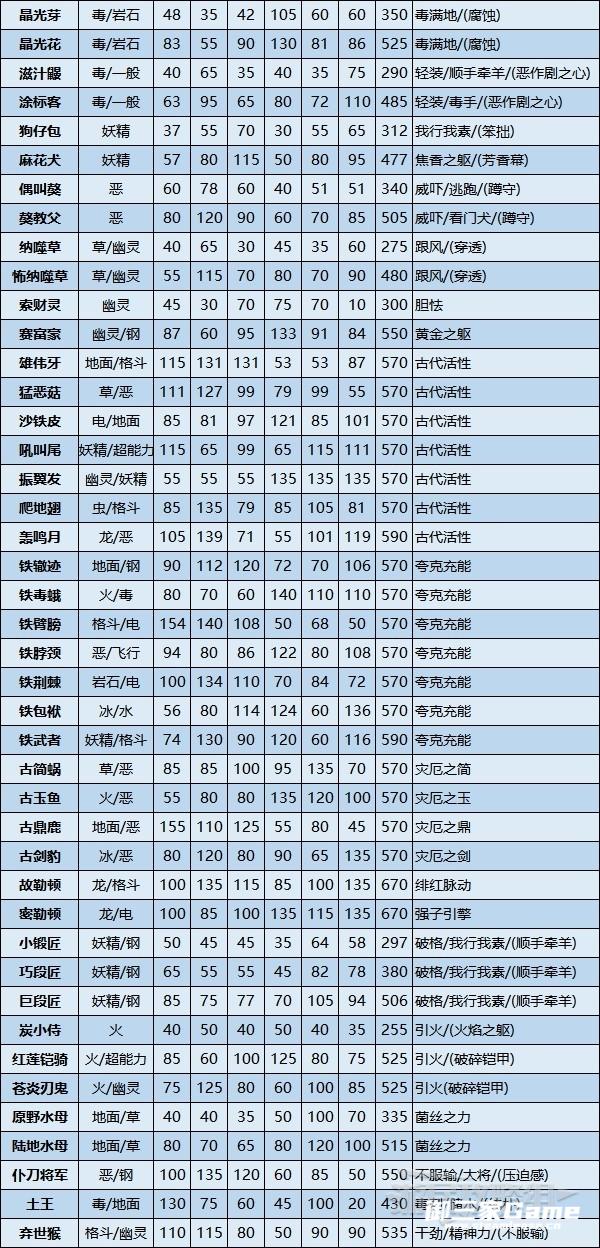 ※具有【古代活性】和【夸克充能】特性的宝可梦分别为古代种和未来种,合称【悖论种】。