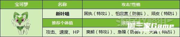 新叶喵最终会成长为具有高攻击和速度的物理攻击宝可梦,推荐选择能降低特攻、提升攻击或速度的性格。如果速度足够的话,优先考虑增加攻击的性格。