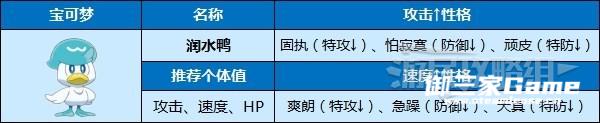 润水鸭是攻击较高的物理攻击宝可梦,推荐选择能提升攻击或速度的性格。由于攻击本身也很高,因此也可以考虑选择加速的性格。